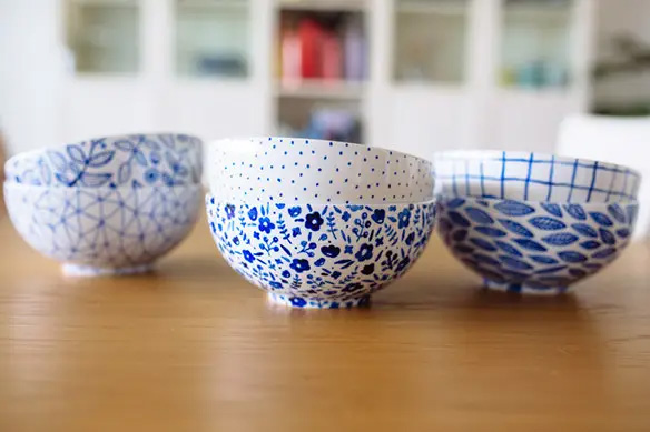 Với bát ăn cơm, đĩa và khay bằng sứ có ba cách chọn: