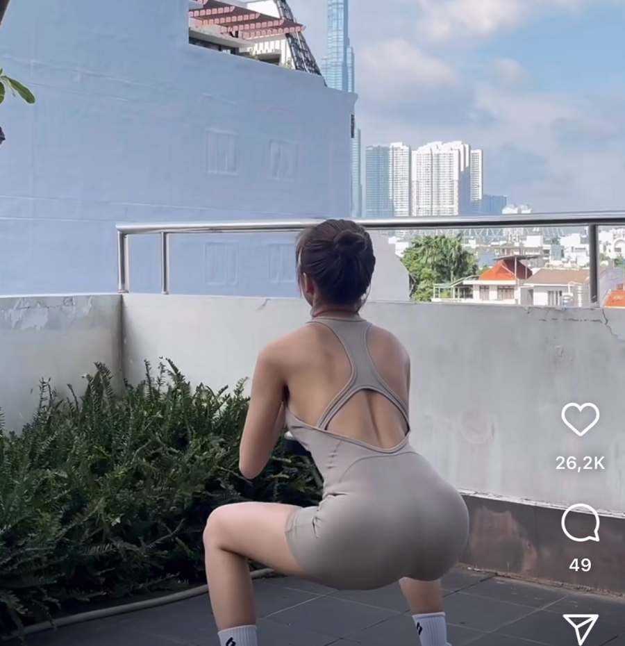 Rất nhiều bài tập được Khánh Huyền áp dụng từ đơn giản như động tác "ngồi xổm" tăng cơ vòng ba.