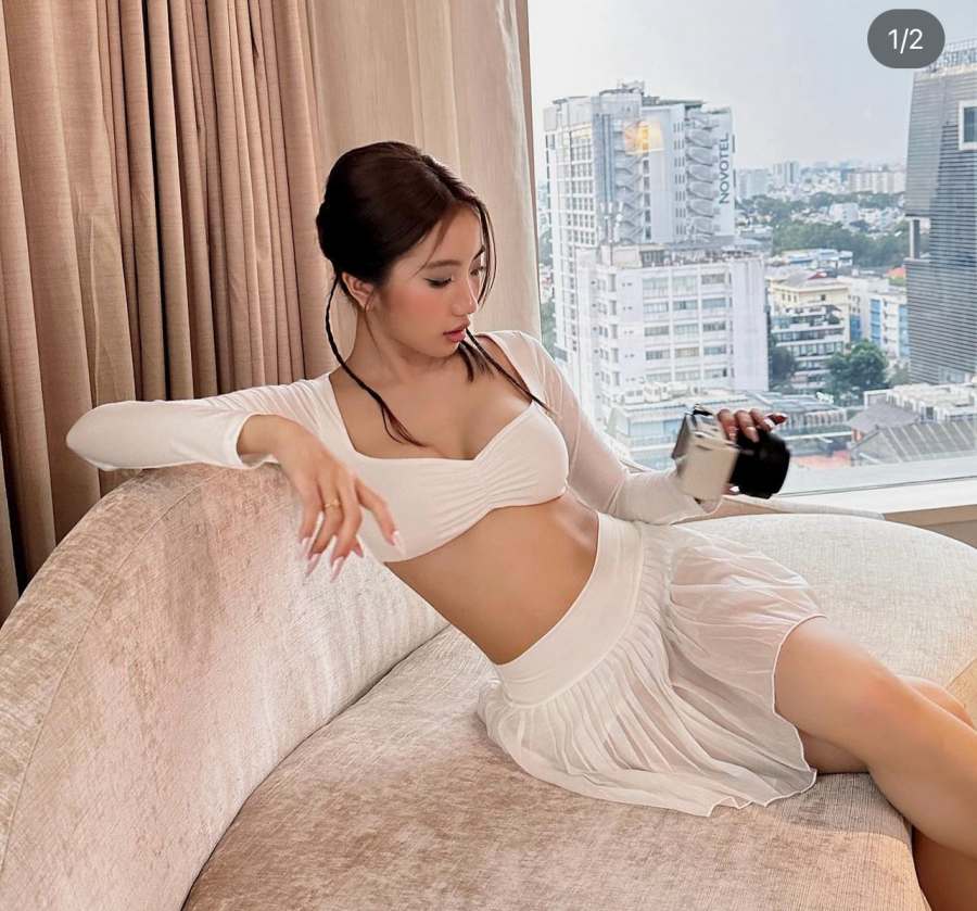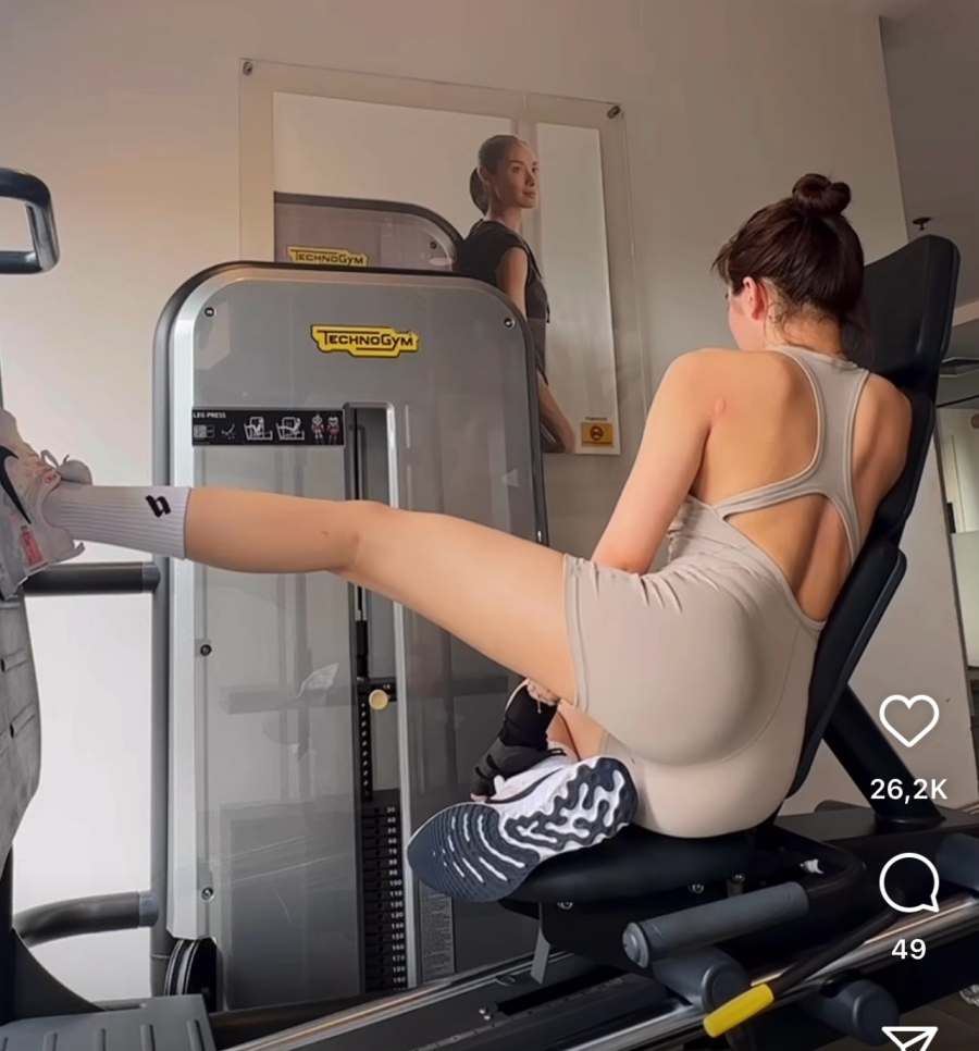 Cô áp dụng nhiều động tác tập từ nhẹ tới nặng như squat cơ bản tới đẩy tạ bằng chân, tách đùi bằng tạ... giúp phát triển phần cơ vòng ba hiệu quả.