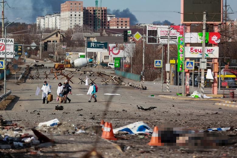 Xe tăng Ukraine di chuyển vào Mariupol sau khi lực lượng Nga bắt đầu tấn công thành phố ngày 24/2.Người dân chờ đợi hết tắc đường khi di tản khỏi Kharkiv ngày 24/2.Thi thể của một người lính không có phù hiệu mà quân đội Ukraine tuyên bố là một quân nhân Nga thiệt mạng trong cuộc giao tranh, nằm trên một con đường bên ngoài thành phố Kharkiv hôm 24/2.Thi thể một nhân viên của một trường học bị thiệt mạng do pháo kích tại thị trấn Horlivka (Gorlovka) ở vùng Donetsk hôm 25/2.Các binh sĩ của Lực lượng Vệ binh Quốc gia Ukraine đảm nhận các vị trí ở trung tâm thủ đô Kiev khi các lực lượng Nga tiến về thủ đô hôm 25/2.Thủ đô Kiev tối 26/2.Người dân và lực lượng quân đội ẩn nấp trong khi còi báo động đợt không kích mới vang lên tại Kiev.Người dân thành phố Uzhhorod, Ukraine tự chế bom xăng để chiến đấu tự vệ.Người phụ nữ Ukraine may mắn mang được con gái sang Ba Lan tị nạn ngày 28/2.Một bé trai Ukraine vẫn lạc quan khi chờ được vận chuyển tị nạn tại nhà ga Nyugati, ở Budapest, Hungary.Tòa nhà chính quyền ở Kharkiv bị tên lửa tấn công hồi đầu tháng 3.Tháp truyền hình Kiev bị trúng tên lửa ngày 1/3.Đầu tháng 3, tổng thống Ukraine vẫn xuất hiện tại Kiev trước tin đồn ông đã bỏ trốn sang nước ngoài.Người dân dùng bom xăng để cán bước tiến quân đội Nga ở thành phống Zhytomyr.Ảnh chụp từ trên không cho thấy một tòa chung cư bị phá hủy do pháo kích ở khu định cư Borodyanka, Kiev.Những đứa trẻ tạm biệt cha đi sơ tán ở ga tàu trung tâm Kiev.Người cha vội bé con đi sơ tán ra khỏi thị trấn Irpin sau trận pháo kích.Hầu như tất cả đều không mang được gì nhiều sau khi Nga bất ngờ mở đợt tiến công quân sự. Trong ảnh, người dân Irpin mang một số vật dụng cần thiết để chạy trốn.Sỹ quan cảnh sát Ukraine nuốt nước mắt tạm biệt con trai đi di tản cùng mẹ ở Irpin.Thành viên đội danh dự Ukraine cầm chân dung một người lính thuộc lực lượng vũ trang trong lễ tang được tổ chức ở Kiev.Những người tị nạn sơ tán trên một chuyến tàu từ Kyiv chờ chuyển đến Ba Lan bên ngoài ga xe lửa ở LvivOlga ôm bạn trai Vlodomyr khi họ nói lời tạm biệt trước khi Vlodomyr ra tiền tuyến từ nhà ga xe lửa ở Lviv.Những người lính Ukraine đi ngang qua tượng đài của người sáng lập thành phố Duke de Richelieu, được bao phủ bởi những túi cát để bảo vệ, ở Odessa, Ukraine.Một người lính Ukraine bò trong chiến hào để ẩn nấp một cuộc không kích bằng trực thăng gần Demydiv, UkraineNhững người dân tình nguyện tham gia Lực lượng Phòng vệ được huấn luyện về vũ khí ở OdessaNhiều người dân vẫn cố gắng di chuyển bằng đường bộ đi sơ tán. Họ mặc đồ trắng cầm cờ trắng đi qua biên giới giữa Bucha và Irpin bên cạnh những thi thể nằm trên đường phố.Người phụ nữ ngồi khóc trước một tòa nhà dân cư bị hư hại ở thị trấn Volnovakha ở vùng DonetskQuân nhân Ukraine giúp an táng một người dân tại thị Irpin hồi giữa tháng 3.Người dân bị thương ở Kiev được lực lượng y tế giúp đỡ thoát khỏi nơi nguy hiểm.Tổng thống Zelensky tặng hoa cho Kateryna Vlasenko, một cô gái 16 tuổi bị thương khi cùng gia đình chạy trốn khỏi thị trấn Vorzel, tại một bệnh viện ở KievTetiana Chornovol, cựu thành viên Quốc hội Ukraine, hiện là thành viên phục vụ và điều hành hệ thống vũ khí tên lửa chống tăng dẫn đường, kéo một tên lửa chống tăng ra khỏi ô tô tại một vị trí chiến tuyến ở Kiev.Egor, 5 tuổi, an ủi mẹ của mình, Helen Yakubets khi chị đang khóc trong một phòng khiêu vũ nơi đã được chuyển thành điểm trú ẩn tạm thời trong khách sạn Mandachi sau khi chạy trốn từ Chernihiv ở Ukraine đến Romania.Trong khi đó tại Kiev, các lực lượng như lính cứu hỏa vẫn miệt mài đi đập lửa hoặc khắc phục những nơi bị bom đạn tàn pháTại những nơi đó, nhiều mất mát về sinh mạng vẫn đang diễn ra. Trong ảnh Olena, mẹ của Denys Snihur, 25 tuổi, một người lính biên phòng thiệt mạng trong một trận pháo kích ở thị trấn phía bắc Ovruch thuộc LvivTuy nhiên vẫn có niềm lạc quan đối với người dân nơi đây dù tương lai chưa thể xác định. Trong ảnh là trẻ em ở Mariupol nô đùa trước tòa nhà bị hư hạiHọ đã dần thích nghi và bắt đầu sống và làm việc trong bom đạnMọi người đứng nhìn khói bốc lên sau một cuộc không kích ở Lviv, Ukraine.Cư dân địa phương đạp xe ngang qua những chiếc xe dân dụng bị san phẳng trên một con phố ở thị trấn Bucha, ngoại ô Kiev, ngày 1/4.Cuộc sống vẫn tiếp diễn dù trong hoàn cảnh khó khăn nhất.Người dân Ukraine vẫn chờ ngày kết thúc chiến tranh để khôi phục đất nước. Trong ảnh là quang cảnh thành phố Mariupol, nơi được cho là vùng "chảo lửa" ác liệt nhất ở Ukraine.