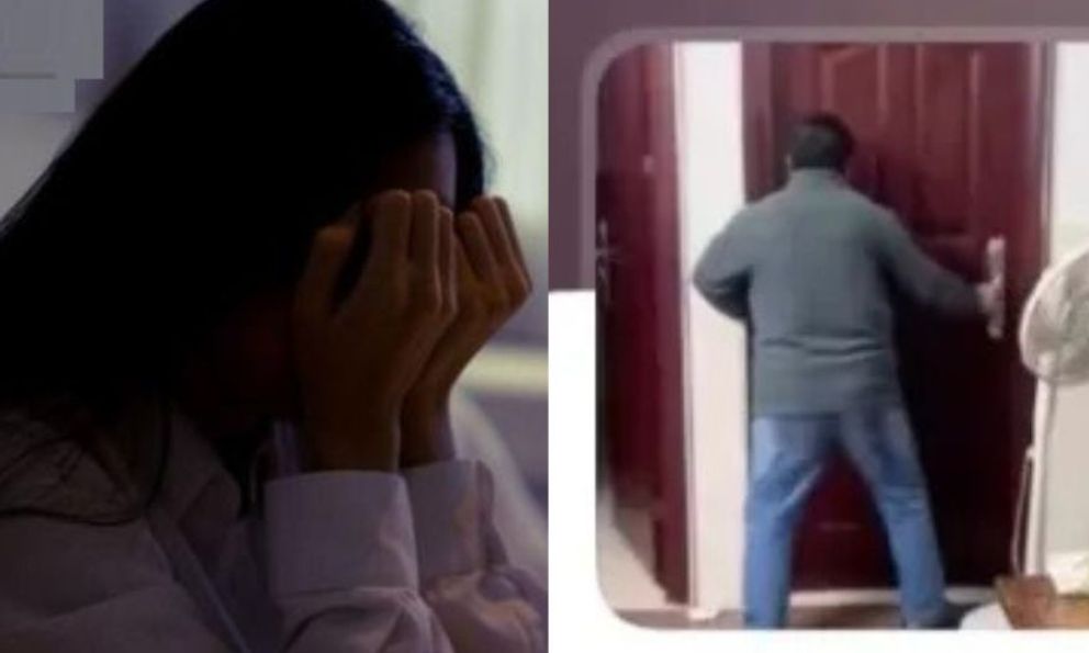 Ngoài cửa, người cha như phát điên, liên tục đạp cửa, lắc mạnh tay nắm cửa để xông vào. Thậm chí còn cầm đồ vật ném vào cánh cửa. Không ai dám tưởng tượng, cô con gái phía sau cánh cửa ấy đã sợ hãi và bất lực đến mức nào.