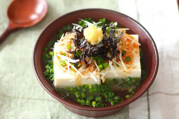 Đậu phụ là một loại thực phẩm thuộc tính lạnh, kết cấu mềm và dễ tiêu hóa. Là món ăn rất giàu nước, sau khi ăn, cơ thể sẽ được cung cấp thêm nước, giúp thanh nhiệt giải hỏa, tăng cường khí lạnh trong dạ dày, và nhuận tràng thông tiện.