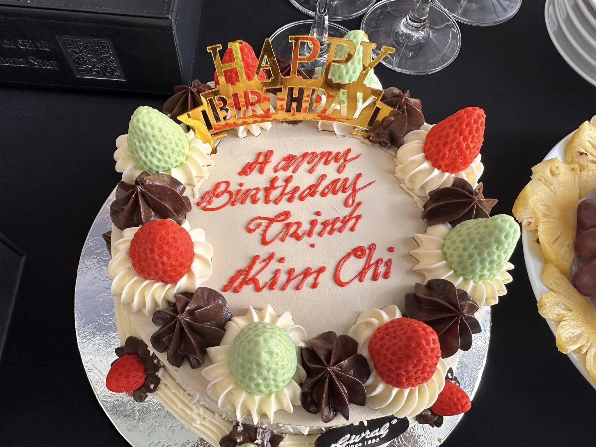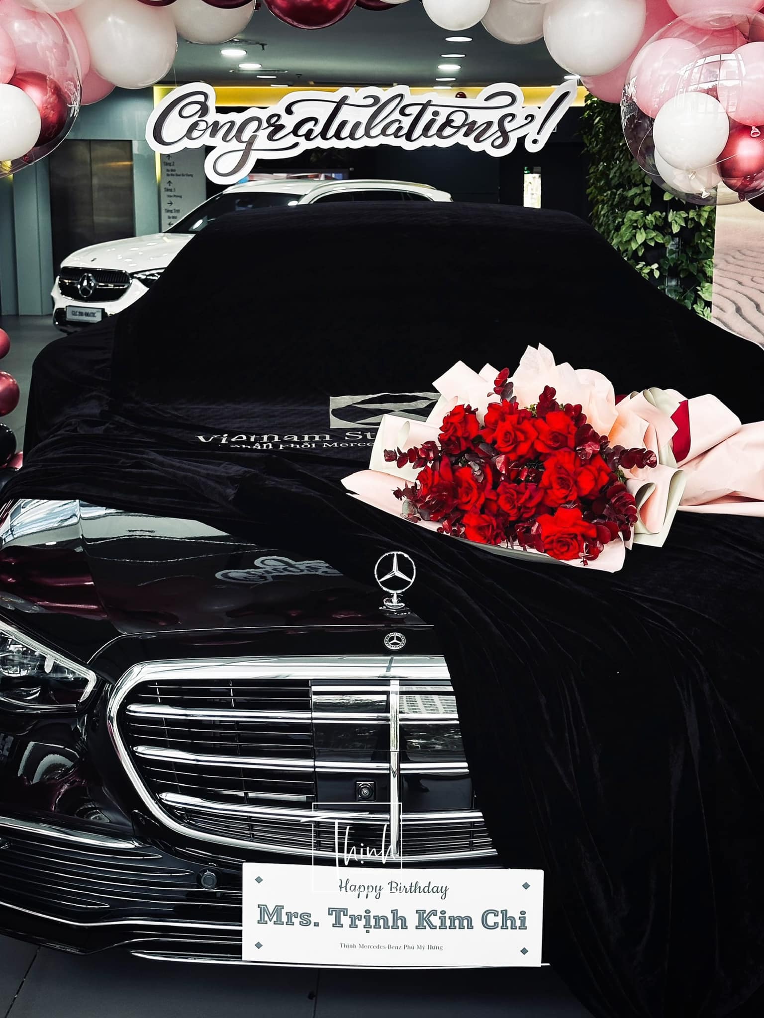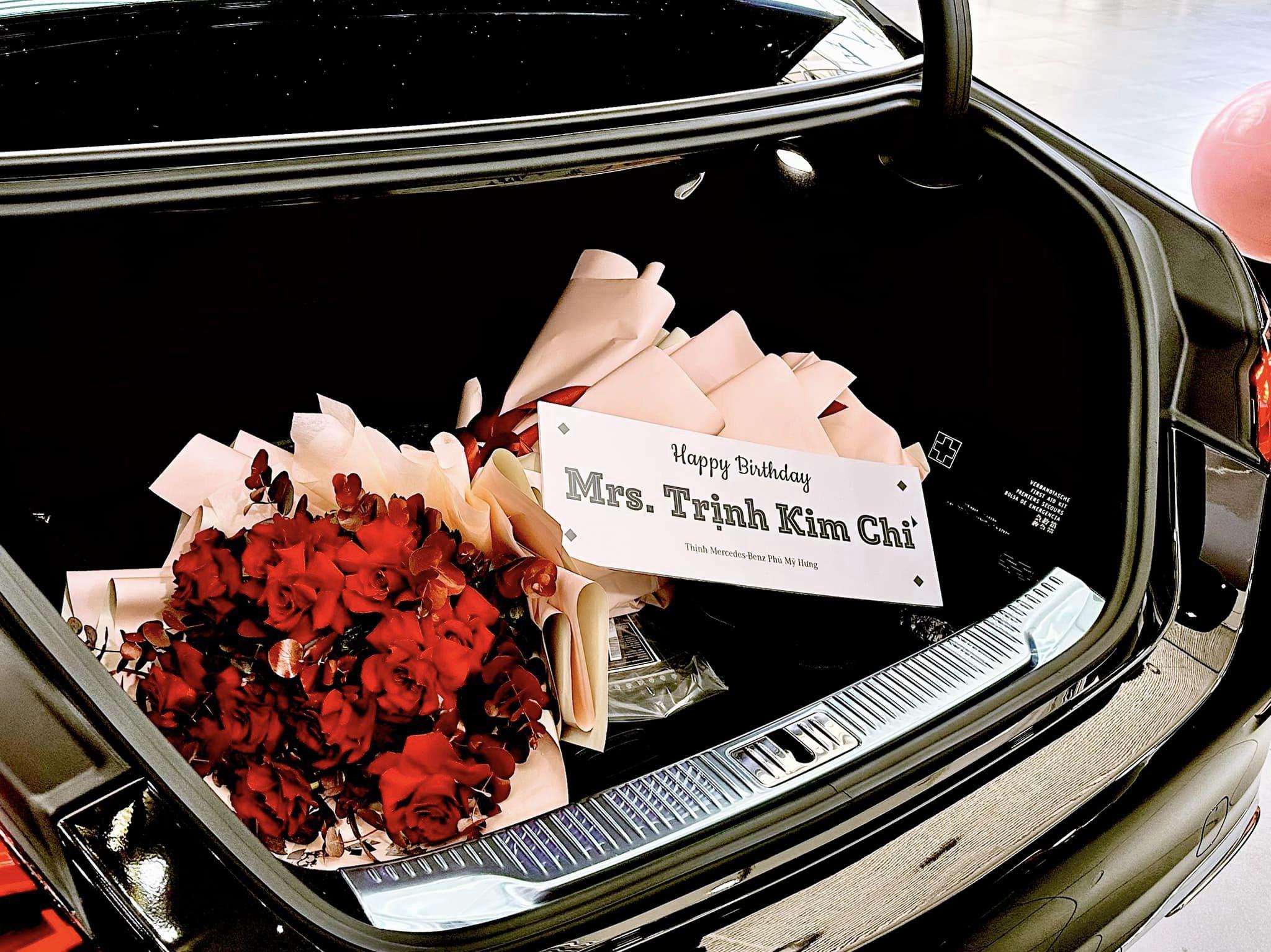 Cùng với xe sang là hoa tươi và bánh ngọt chúc mừng sinh nhật Trịnh Kim Chi