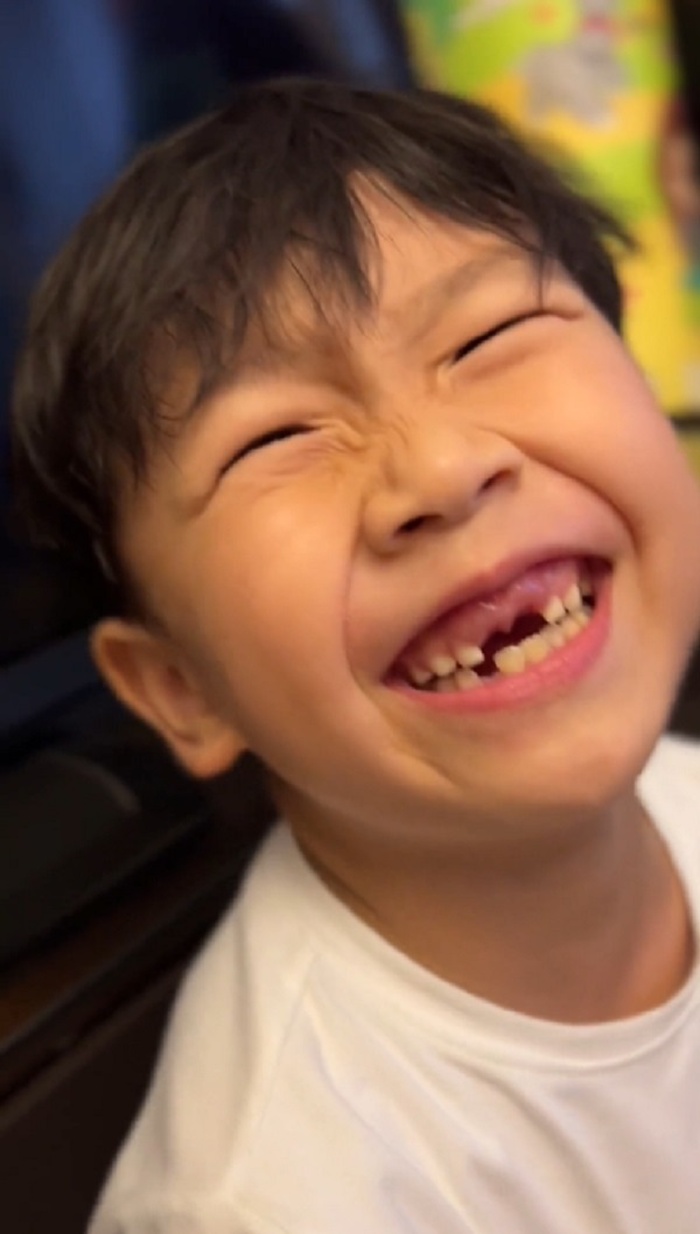 Có thể thấy, thông thường, khi thấy răng của mình bị như vậy nhiều bé sẽ bật khóc nức nở, ngay cả bố mẹ dỗ mãi cũng không nín. Nhưng cậu bé này không những không khóc mà còn nở một nụ cười tươi rói. Chính biểu cảm đáng yêu này của bé trai đã khiến nhiều người vô cùng thích thú.
