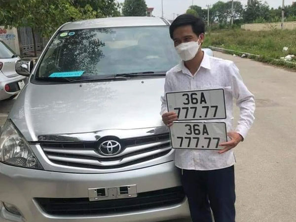 Trưa 10/5, trên mạng xã hội lan truyền hình ảnh người đàn ông ở Thanh Hóa đã may mắn bấm được biển kiểm soát 36A-777.77 khi đi làm lại đăng ký xe và sang tên đổi chủ.