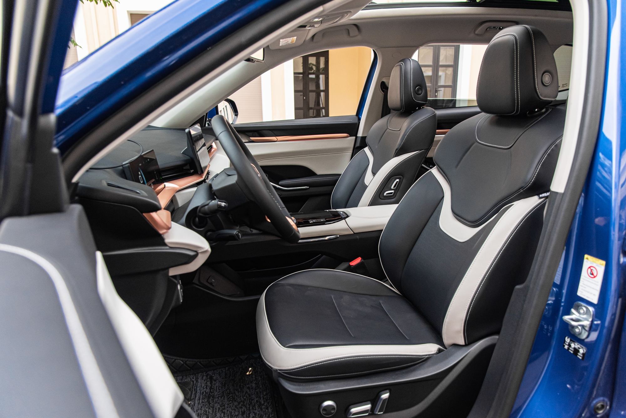 Toàn cảnh hai hàng ghế của Haval H6 Hybrid. Cả 2 ghế trước đều chỉnh điện đa hướng và có làm mát. Hàng ghế sau có không gian để chân rộng rãi, đủ thoải mái với những người cao trên 1,8 mét.