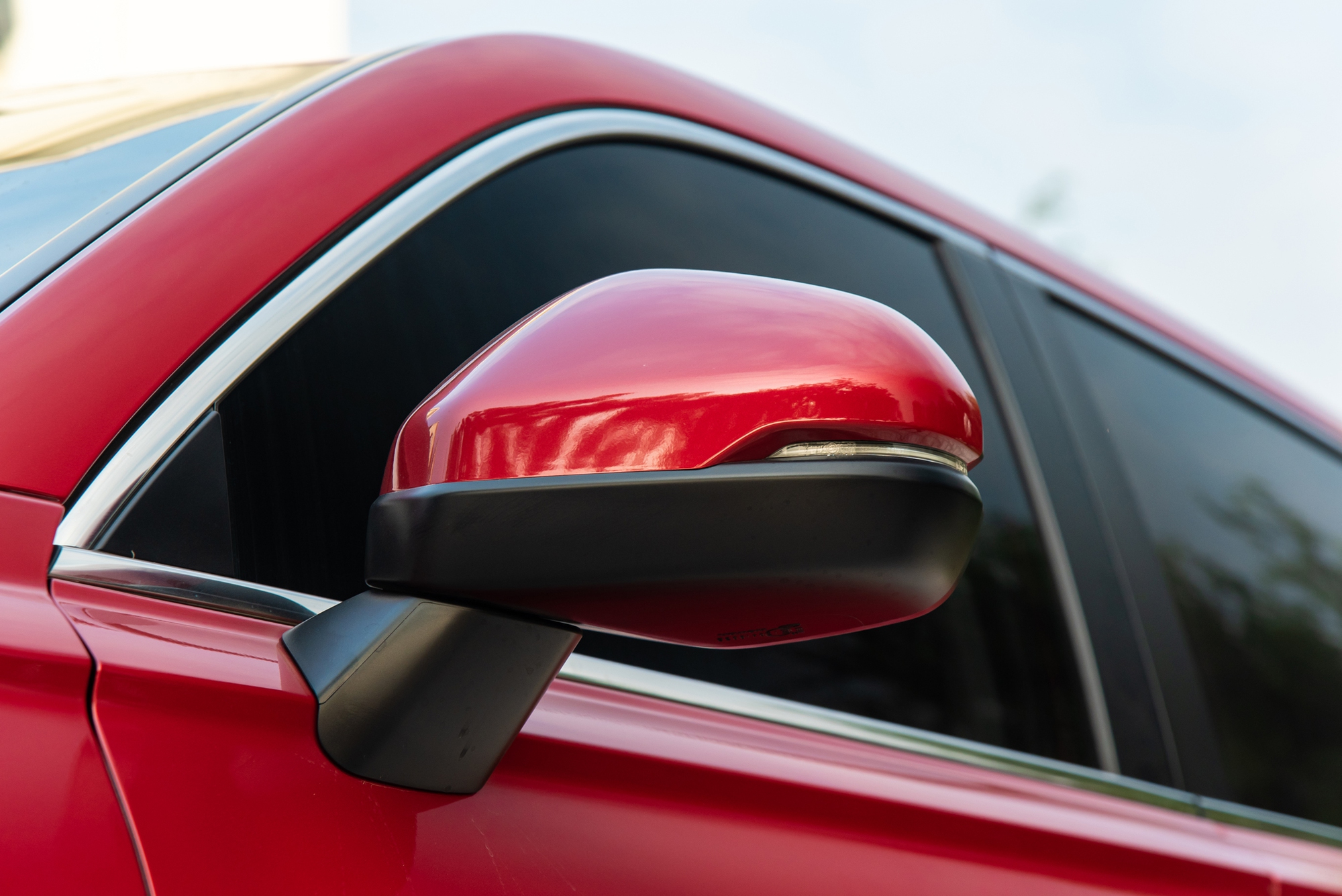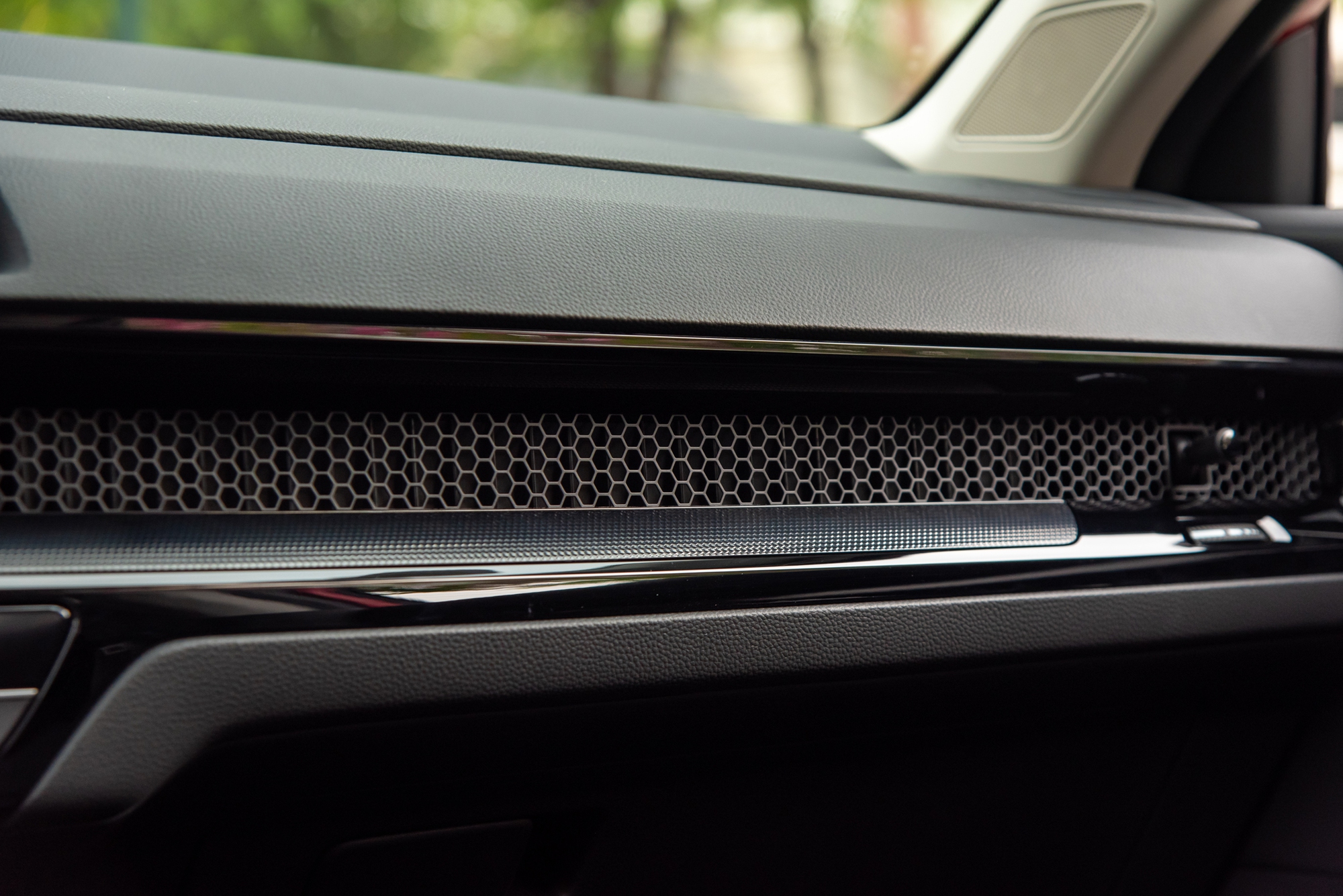 Sang khu vực táp-lô có một màn hình trung tâm 9 inch đặt nổi, độ nét cao, phản hồi và chuyển tiếp giữa các giao diện mượt mà. Một điểm cộng khác là có kết nối Apple CarPlay không dây giúp cabin có phần gọn gàng hơn. Điểm trừ là khi kết nối không dây vẫn có độ trễ và thêm nữa phần viền màn hình vẫn hơi dày so với một số mẫu xe mới ngày nay. Bản này chỉ sử dụng 8 loa trong khi bản RS là 12 loa Bose.