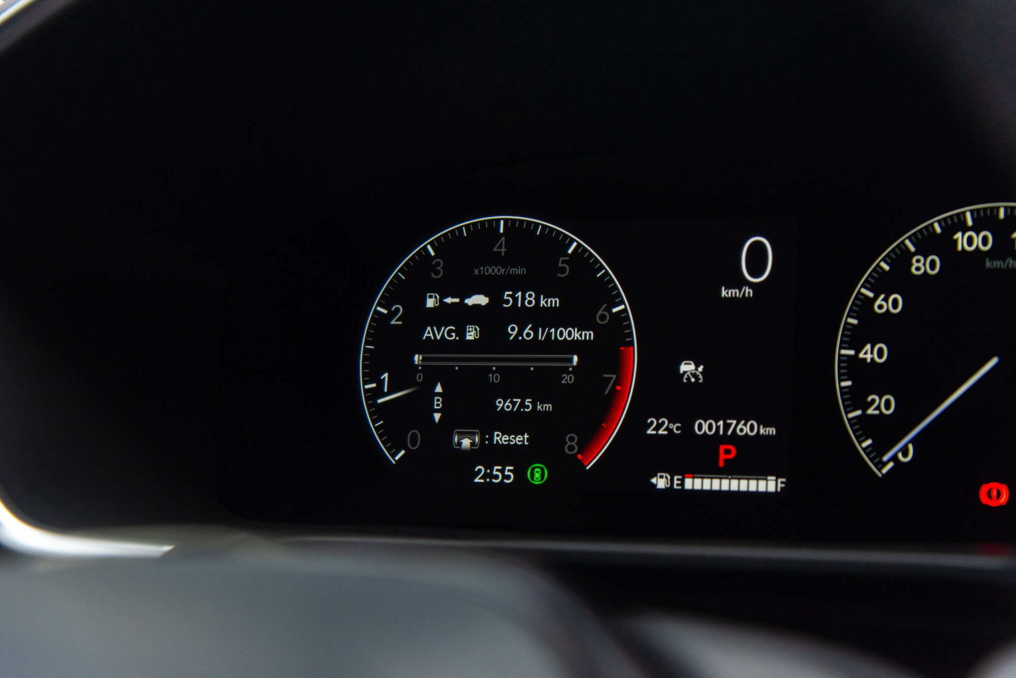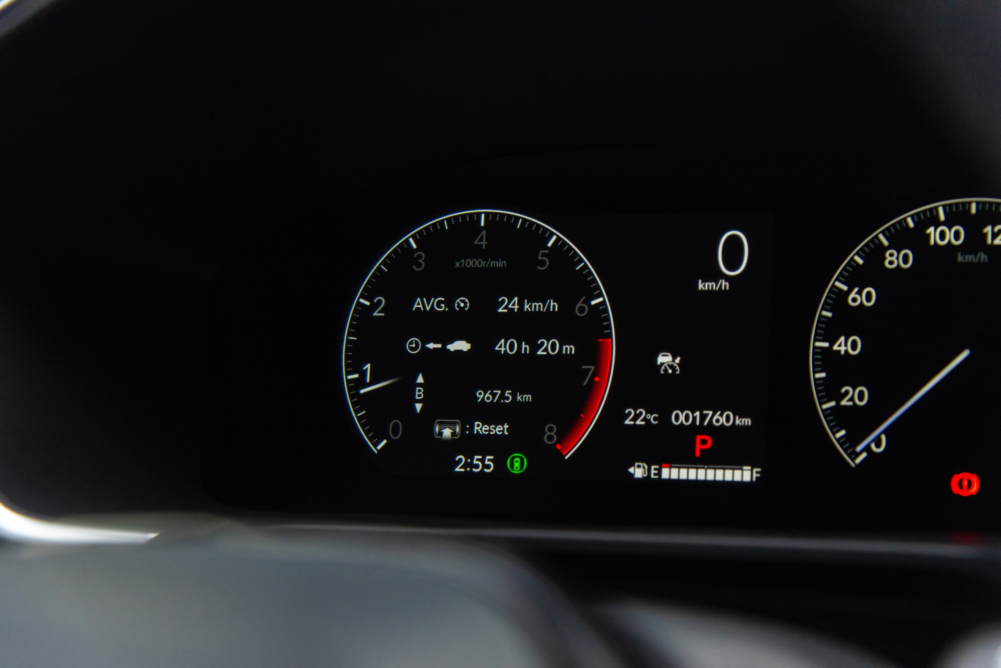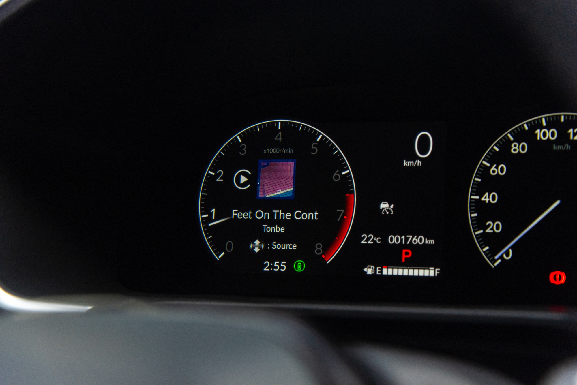 Honda CR-V phiên bản L 1 cầu mà chúng tôi trải nghiệm chỉ sử dụng đồng hồ tốc độ cơ học kết hợp màn điện tử 7 inch có độ nét tốt. Mặc dù người lái có thể tùy chỉnh nhiều kiểu giao diện thông tin khác nhau nhưng nhóm chúng tôi vẫn thích loại điện tử toàn phần (10,2 inch) có trên bản L AWD hoặc hybrid RS hơn.
