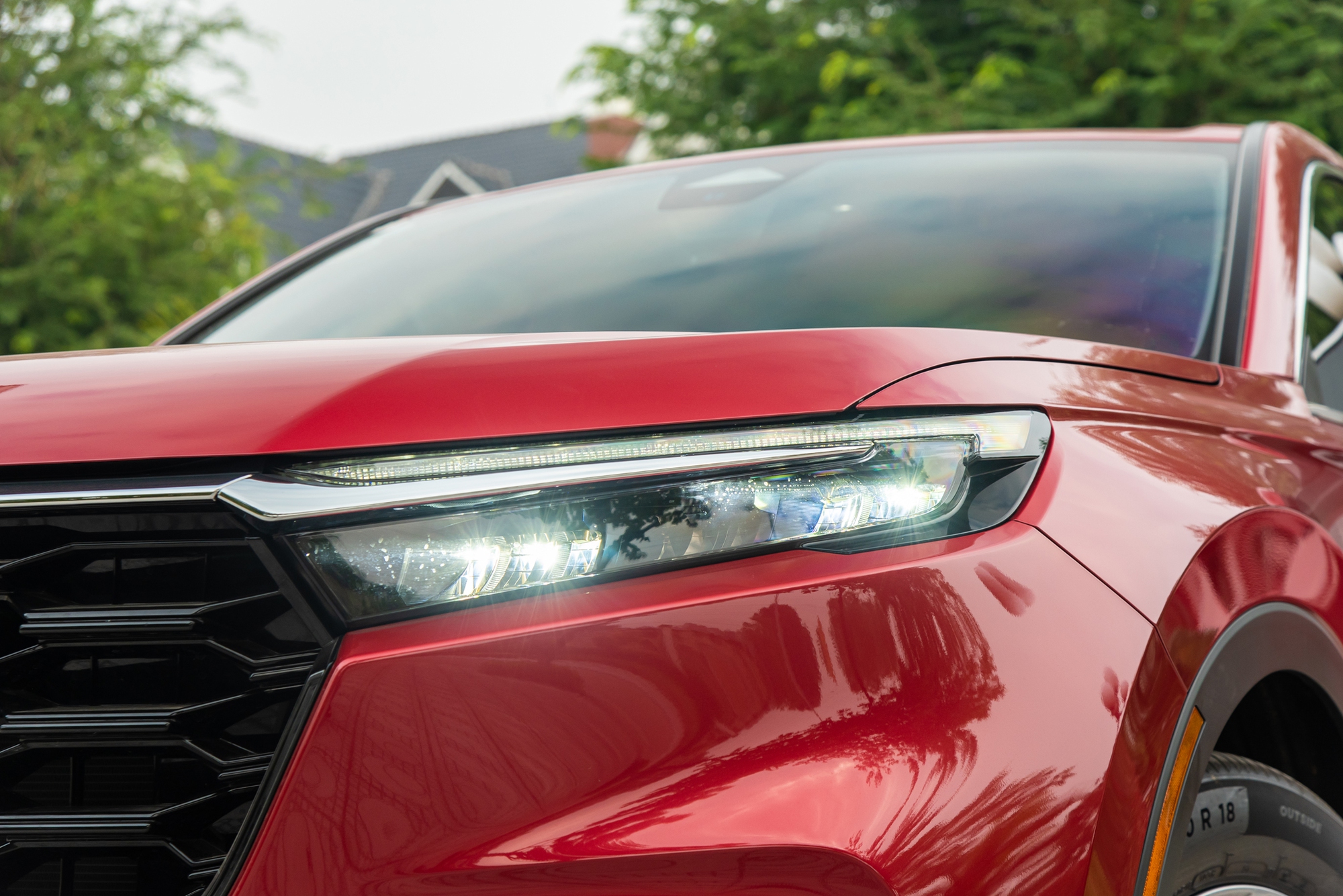 Đường nét thiết kế của Honda CR-V 2024 đã khác biệt so với bản cũ, trở nên góc cạnh và cứng cáp hơn. Thực tế cho thấy, phiên bản này to và đồ sộ hơn phiên bản cũ khá nhiều.