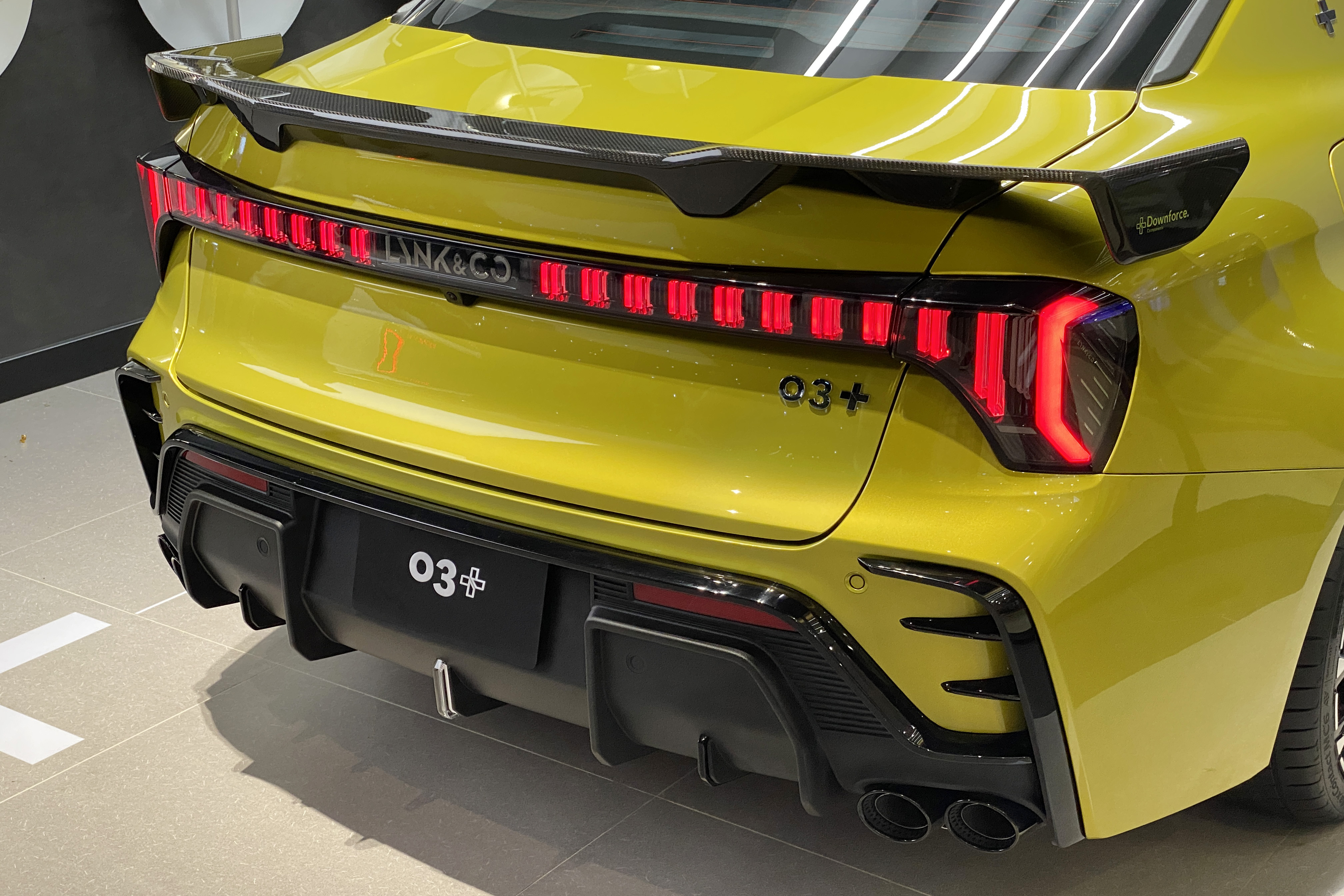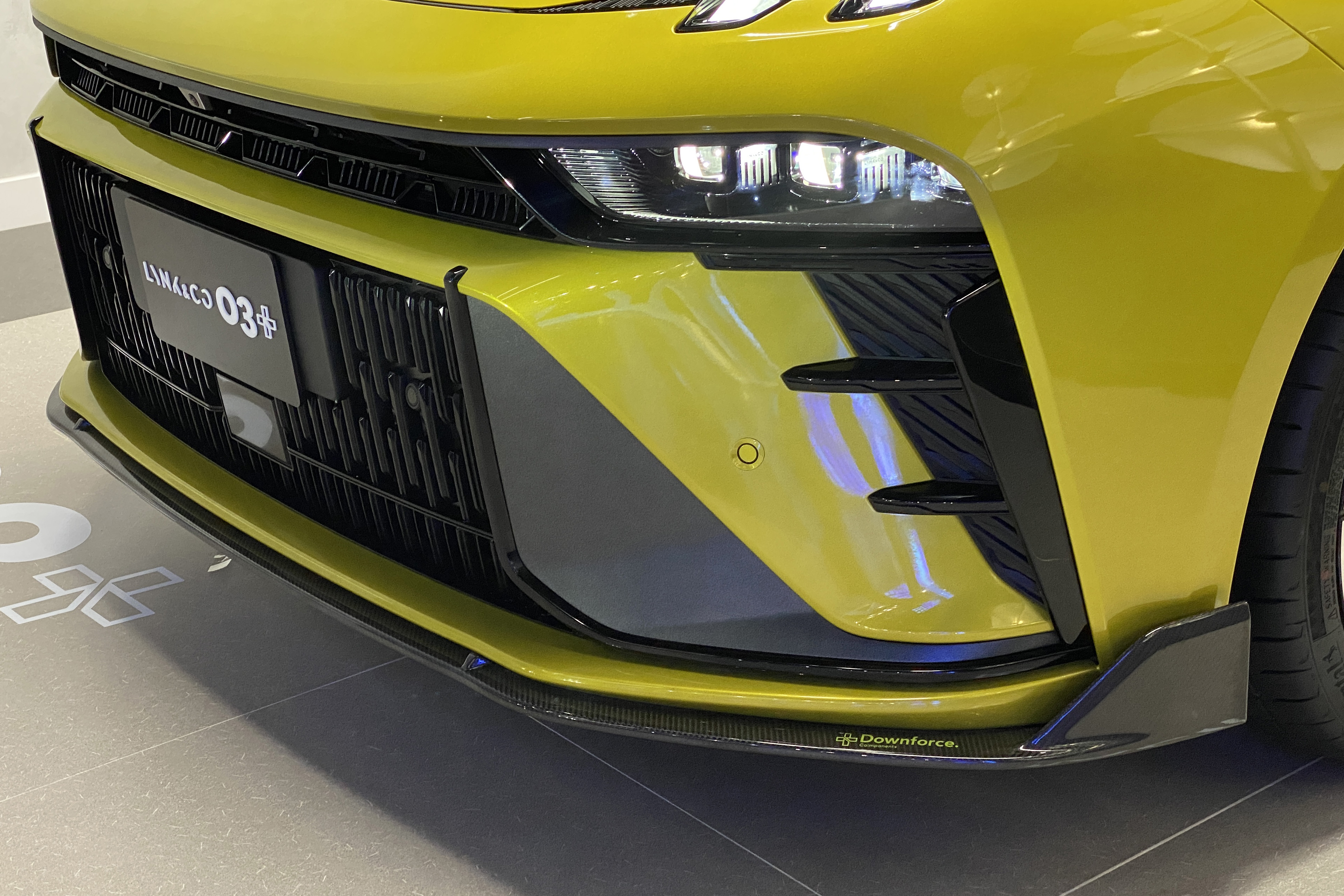 Điểm đặc biệt ở ngoại thất phiên bản 03 T5 Evo là những chi tiết cánh gió carbon ở cả phía trước và phía sau xe. Trên các chi tiết carbon này có chữ "Downforce" tức là tăng lực ép lên chiếc xe, giúp xe bám đường hơn ở tốc độ cao.