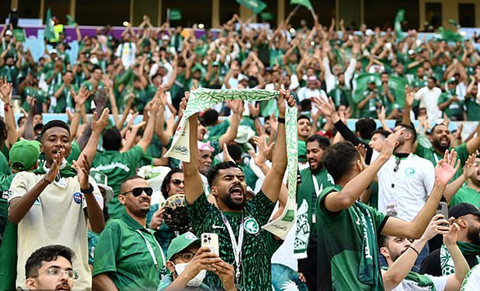 Các cổ động viên của Saudi Arabia đang tạo nên bầu không khí vô cùng sôi động trên sân Lusail Iconic