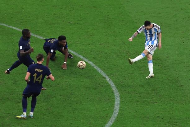 Lautaro thoát xuống dứt điểm nhưng Lloris đẩy ra. Messi băng vào đá bồi và dù Upamecano cản phá nhưng bóng đã đi qua vạch vôi.