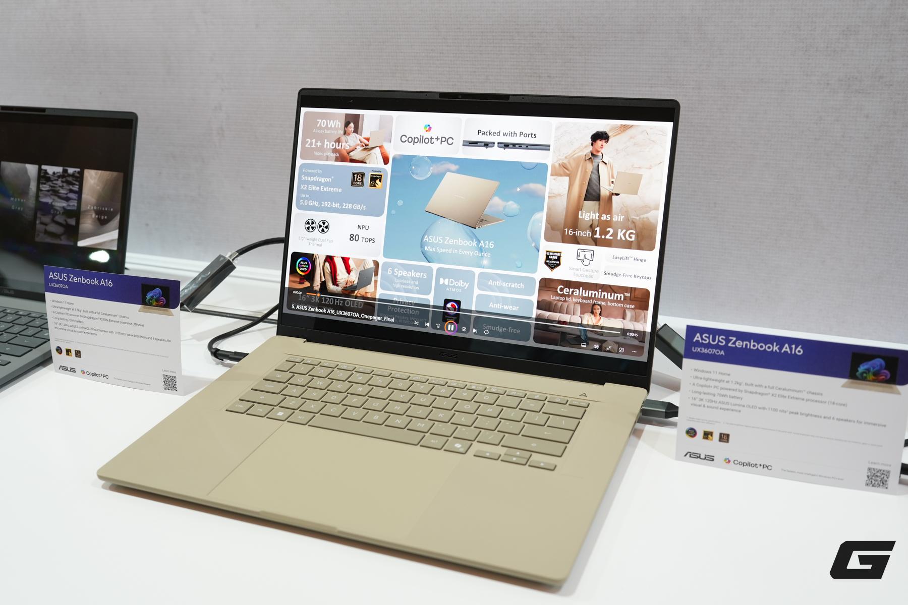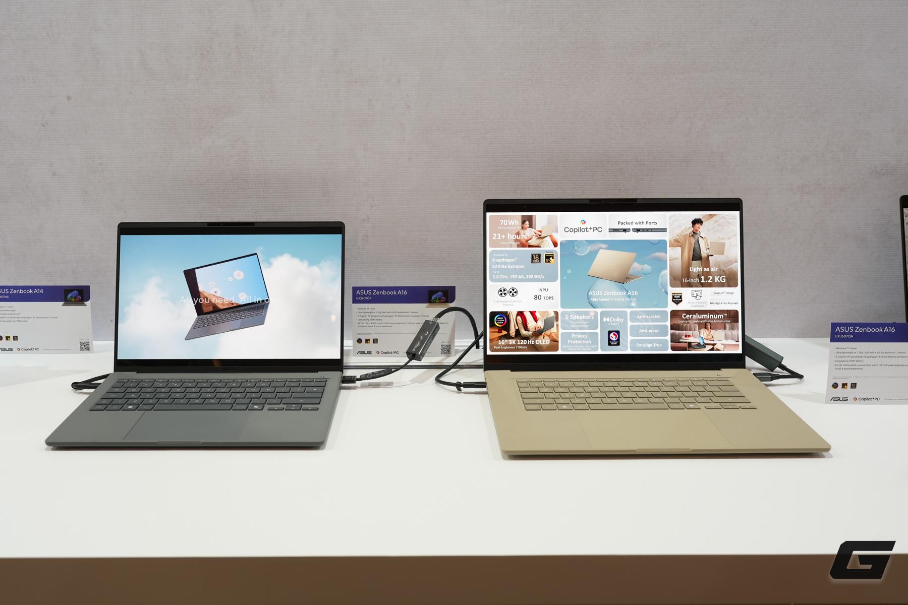 Ở nhóm laptop hướng đến tính di động tối đa, Zenbook A16 và Zenbook A14 là hai đại diện tiêu biểu cho hướng đi Snapdragon mà ASUS đang theo đuổi tại CES 2026.