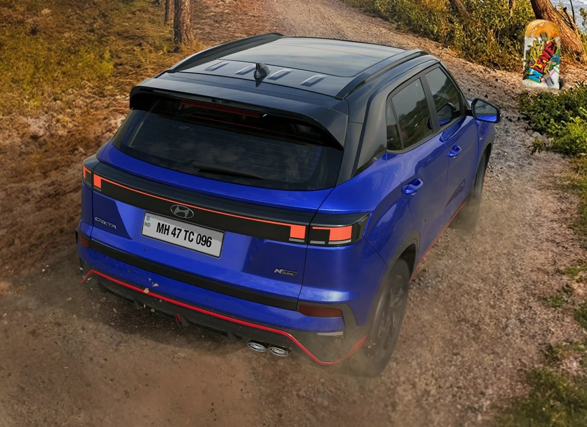 Những thay đổi còn lại tại ngoại thất Hyundai Creta N Line 2024 là cản sau kéo dài trang trí đỏ giống phía trước, mâm hợp kim 18 inch mới đi kèm cặp phanh đỏ, ống xả kép, tông xanh dương Thunder Blue độc quyền và huy hiệu N Line rải rác ngoài xe.