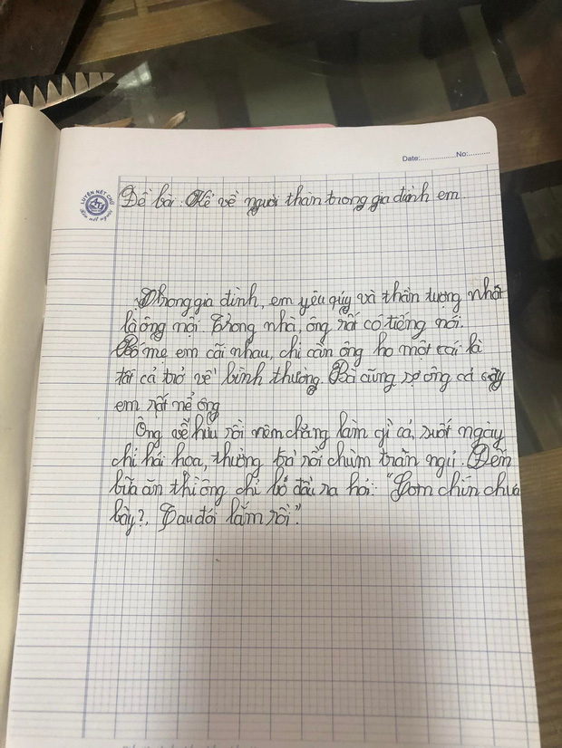 Trong bài văn kể về người thân trong gia đình của một học sinh tiểu học được chia sẻ mới đây đã khiến cư dân mạng cười bò vì những chi tiết "bá đạo". Học trò này miêu tả về ông nội bằng cả sự ngưỡng mộ vì ông nhưng cái kết khiến ai cũng cười ngả nghiêng.