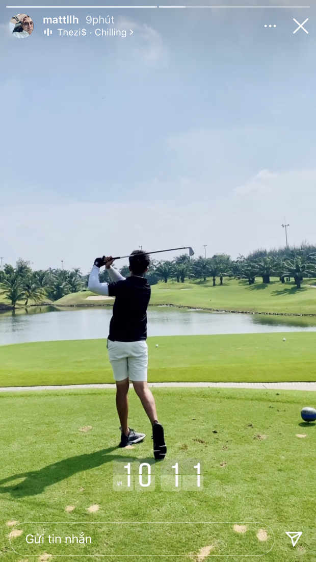 Ấy thế mà ngay vài giây sau, Matt Liu đã có luôn động thái. CEO trẻ tuổi cũng up story đang chơi golf, không quên xác nhận thời gian 10:11 như để khẳng định mình cũng đang ở sân golf ngay lúc này.