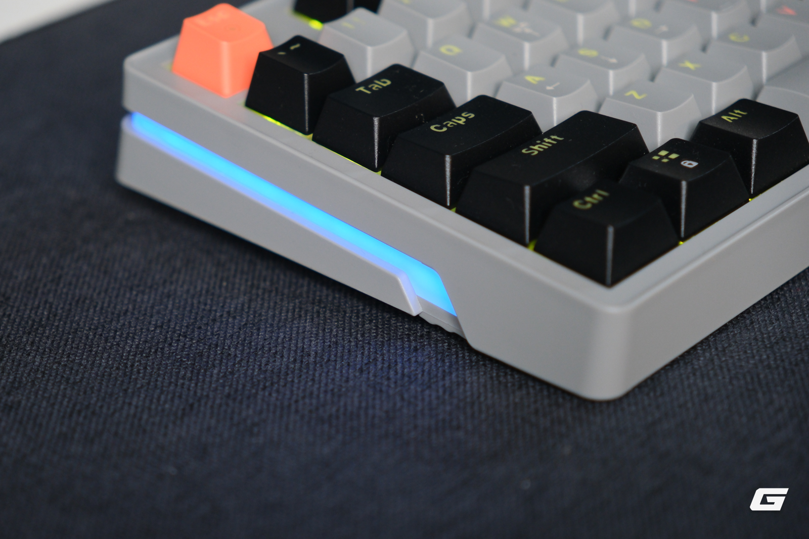 Ngoài backlight phím, V501-87 còn có đèn LED chạy dọc hai bên hông và mặt đáy bàn phím - chi tiết tạo hiệu ứng "glow" khi đặt trên bàn.