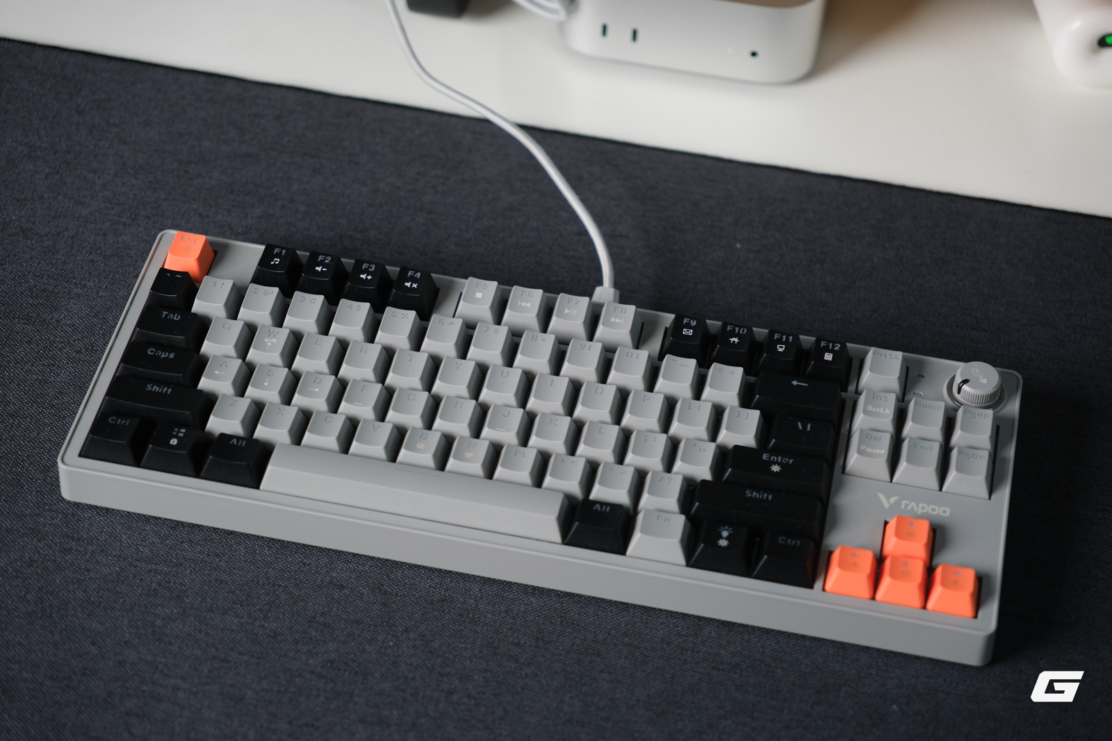 Rapoo vừa đưa V501-87 lên kệ tại Việt Nam với giá 590.000 đồng, nhắm vào phân khúc bàn phím cơ phổ thông vốn đang rất đông đúc với các cái tên như E-Dra EK87, Fuhlen L87s hay Akko AK87. Điểm khác biệt Rapoo chọn để cạnh tranh là một knob xoay đặt ở góc trên bên phải - thứ không nhiều đối thủ cùng giá có.