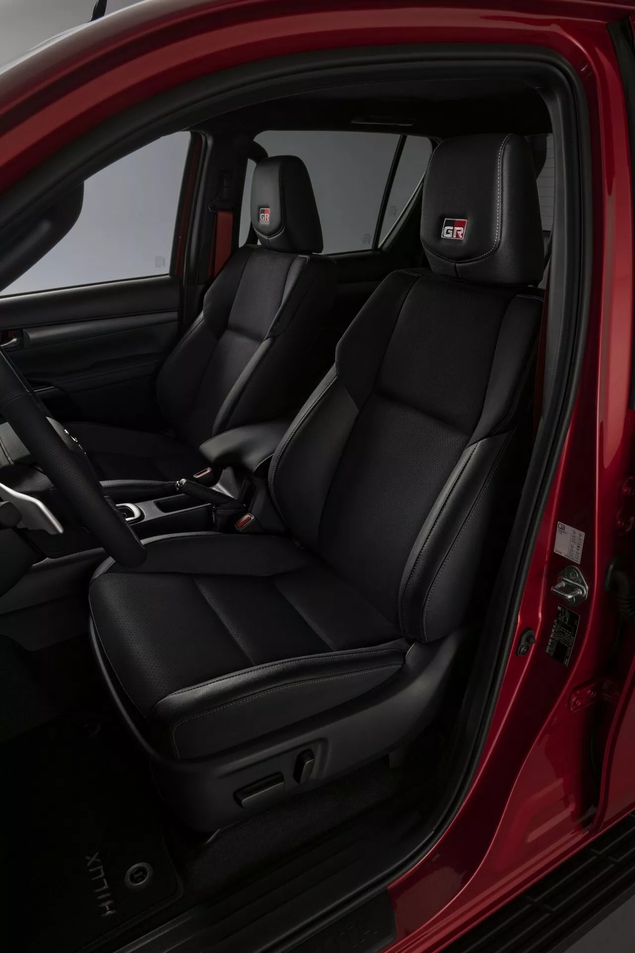 Nội thất xe tiếp tục kết hợp tông đen - đỏ với ghế thể thao bọc da kèm da lộn khâu chỉ tương phản. Logo GR, bàn đạp nhôm, dàn 9 loa JBL cao cấp và màn cảm ứng trung tâm 8 inch hỗ trợ Android Auto nối dây/Apple CarPlay không dây là một vài điểm nhấn khác.