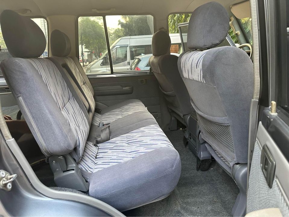 Bước vào bên trong, toàn bộ ghế bên trong đều được bọc nỉ. Hàng ghế thứ 2 của xe có thể trượt và gập lại để tăng diện tích cho cốp chứa đồ. Kính trên cửa của chiếc Land Cruiser cũng được chuyển từ điều chỉnh cơ học sang điện.