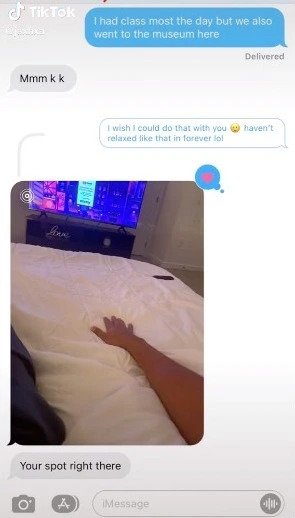 Chàng trai nhắn tin trả lời: "Chỗ của em ở ngay đây," và gửi kèm theo một bức ảnh anh ta nằm trên chiếc giường lớn vẫn còn một khoảng trống rộng rãi.
