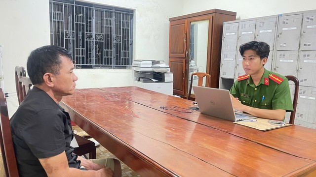 Cán bộ điều tra Công an phường làm việc với Phạm Ngọc Hoàn (Ảnh: Công an Đồng Nai).