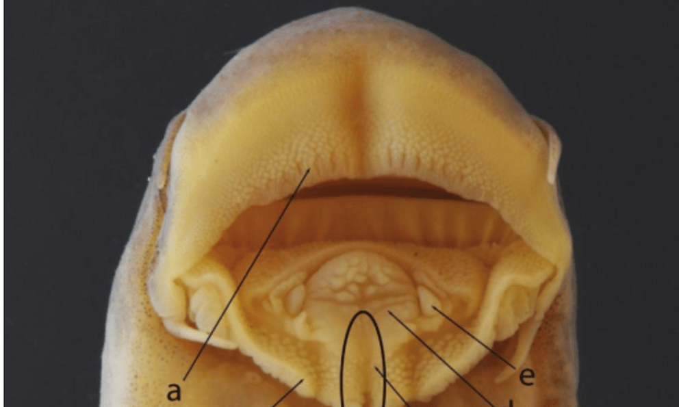 Cấu trúc đĩa miệng của loài cá này cũng có một khe nứt đặc trưng trên đệm chai trung tâm, tạo thành đường tách dọc theo trục giữa của miệng, kéo dài tới mép sau của đĩa. Đây là chi tiết quan trọng giúp các nhà khoa học phân biệt loài mới với các loài gần gũi.