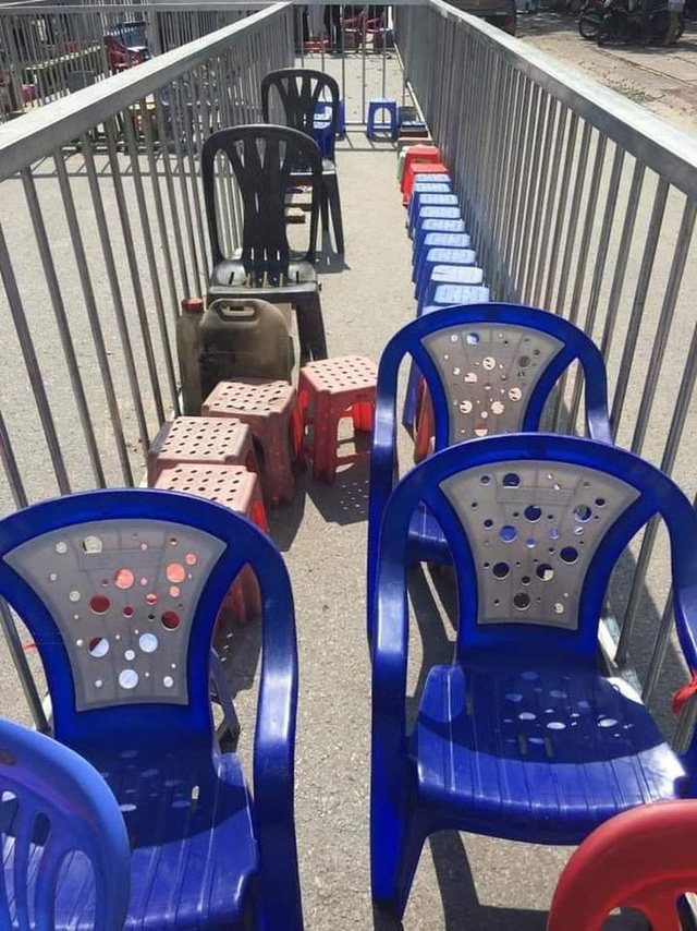 Tuy nhiên, hàng ngàn người đã tụ tập trước sân vận động Cẩm Phả từ sáng 20/5 để đặt ghế, gạch hoặc bất cứ vật dụng gì có thể viết tên mình... trước hàng rào xếp hàng lối vào sân nhằm giữ chỗ.