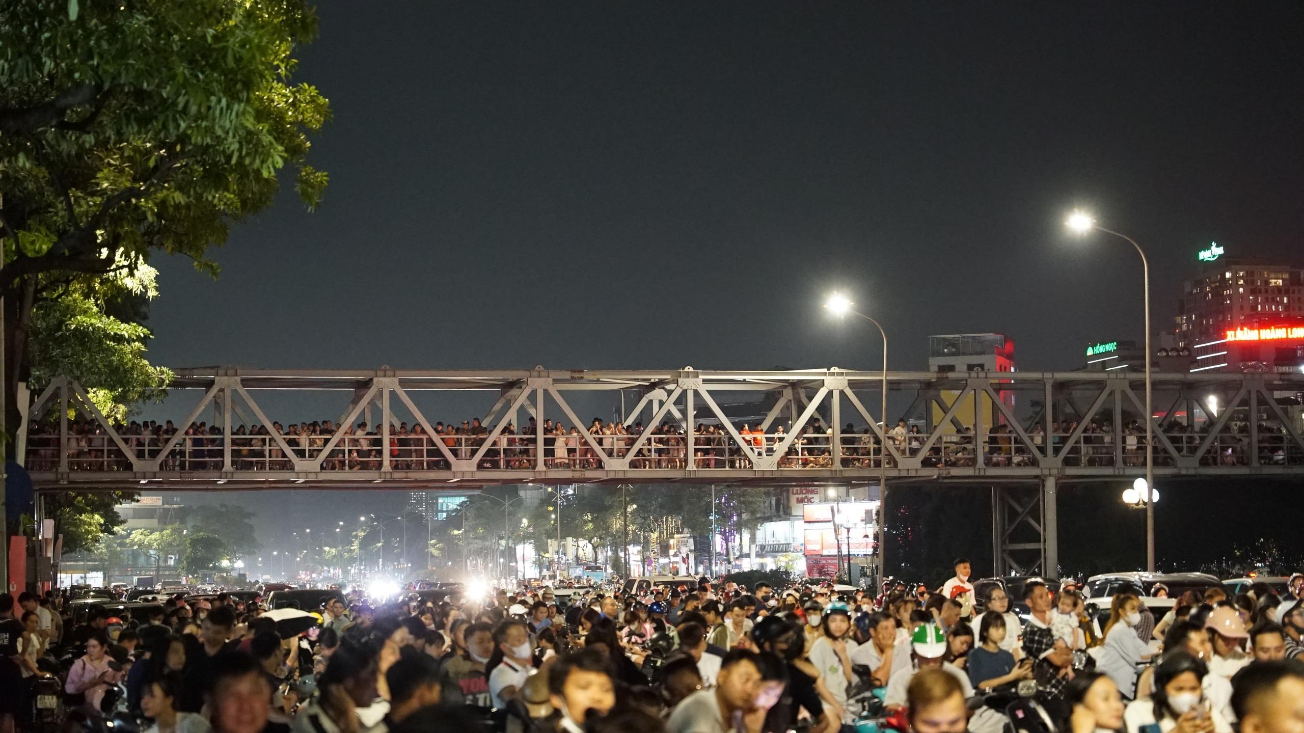 20 giờ: Khu vực cầu vượt chật kín người chờ xem pháo hoa