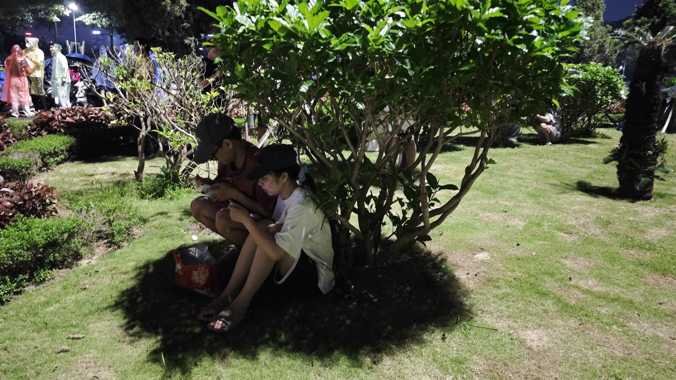 Tuy vậy, thay vì rời đi, không ít người vẫn quyết tâm bám trụ để theo dõi màn pháo hoa cuối cùng. Dưới các tán cây, mái hiên hay khu vực có thể che chắn tạm thời, từng nhóm người đứng co cụm, vừa trú mưa vừa chờ đợi.