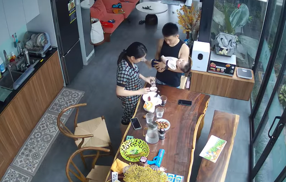 Mới đây, một clip ghi lại cảnh tình cảm của cặp vợ chồng bỉm sữa khiến dân tình ngưỡng mộ. Theo đó anh chồng bế con nhỏ, còn người vợ lúi húi pha sữa. Anh chồng bất ngờ tiến lại gần hôn lên môi vợ trong sự ngỡ ngàng của em bé. Thấy con trai bất ngờ, người mẹ nhanh chóng cưng nựng con trai. Sau đó tiếp tục pha sữa.