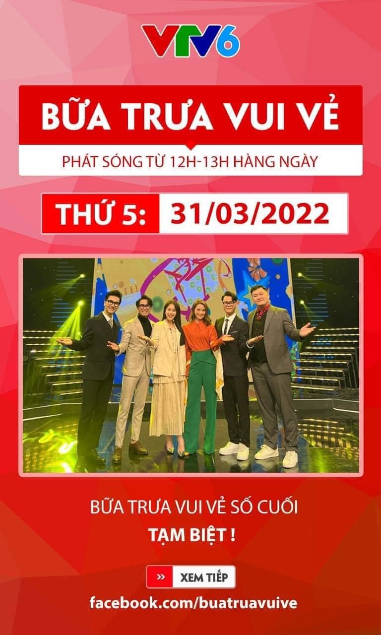 Tối ngày 30/3, fanpage chính thức của chương trình Bữa trưa vui vẻ thông báo số ngày 31/3 sẽ là số cuối cùng của chương trình, khép lại sau 8 năm lên sóng khiến khán giả tiếc nuối.