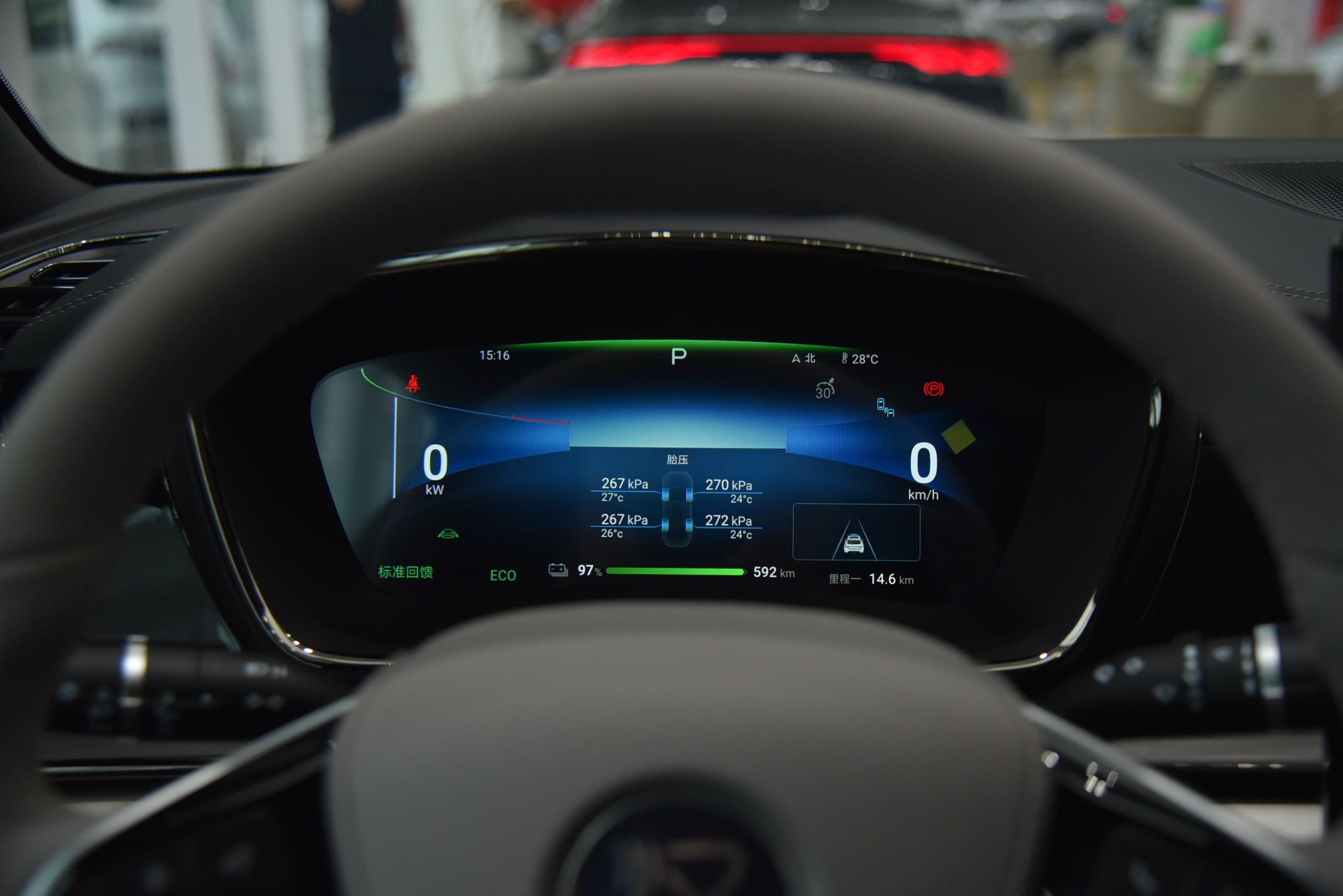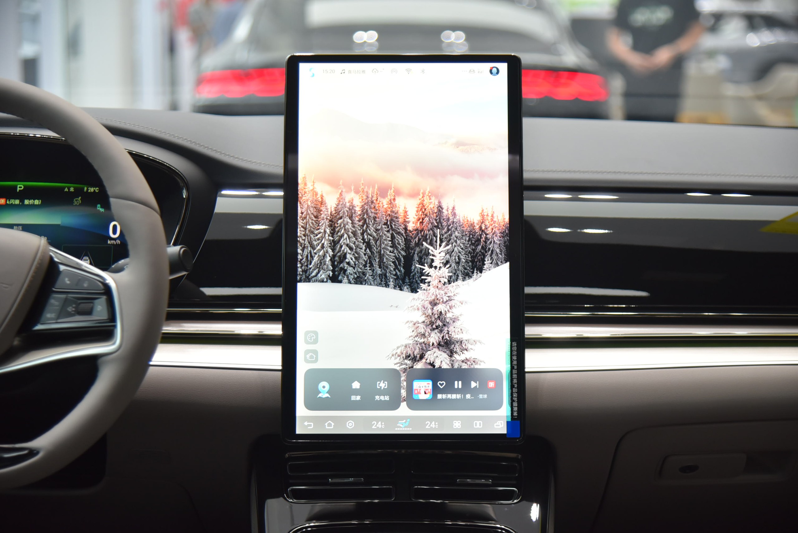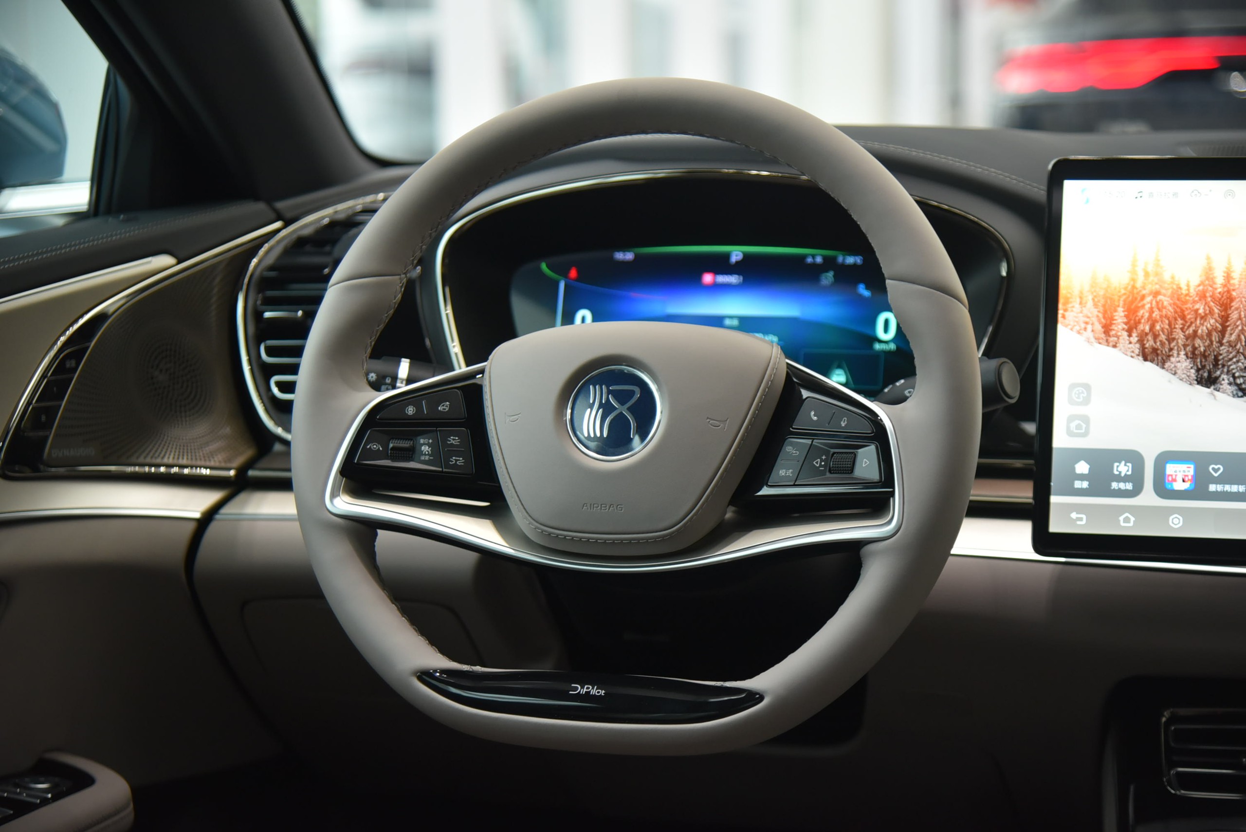 Trong khoang lái, xe bố trí vô-lăng bọc da, tích hợp tính năng sưởi. Bảng đồng hồ LCD 12,3 inch ở phía sau cung cấp thông tin rõ ràng về vận hành xe. Trên bảng taplo, màn hình trung tâm Ultra HD kích thước 15,6 inch gây ấn tượng với khả năng xoay ngang hoặc dọc.
