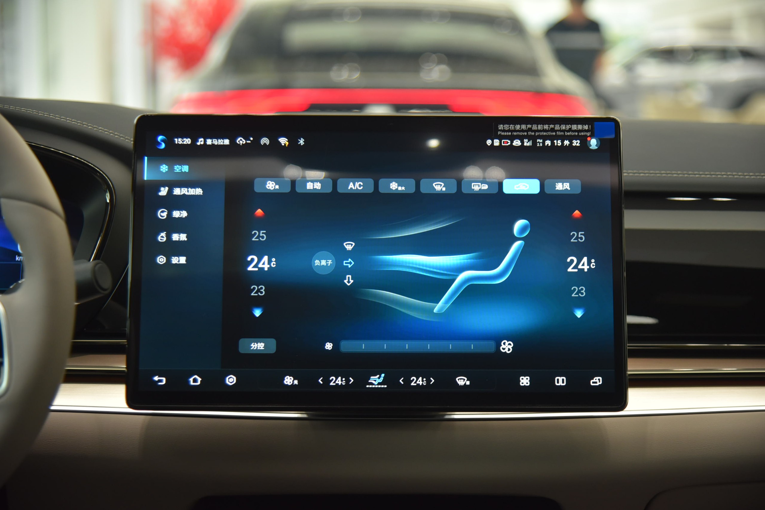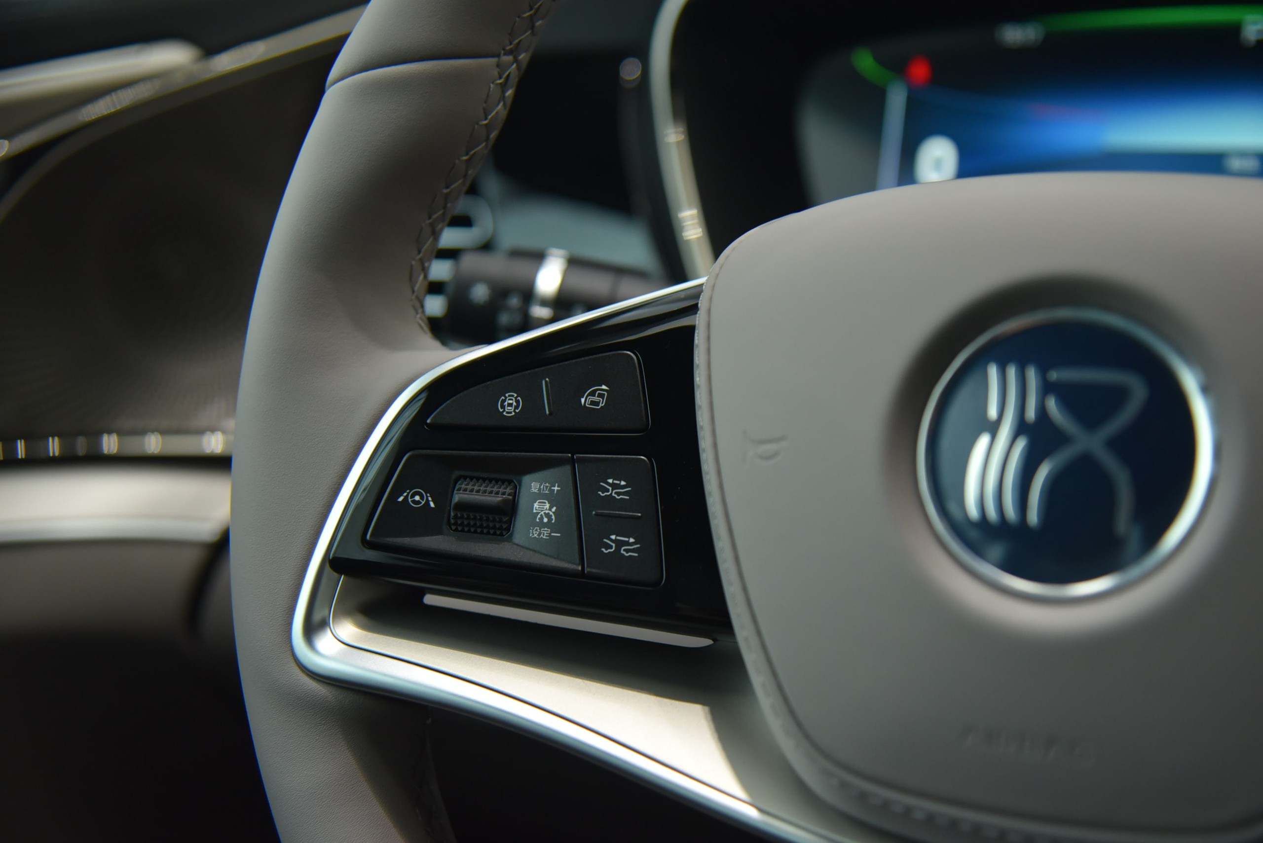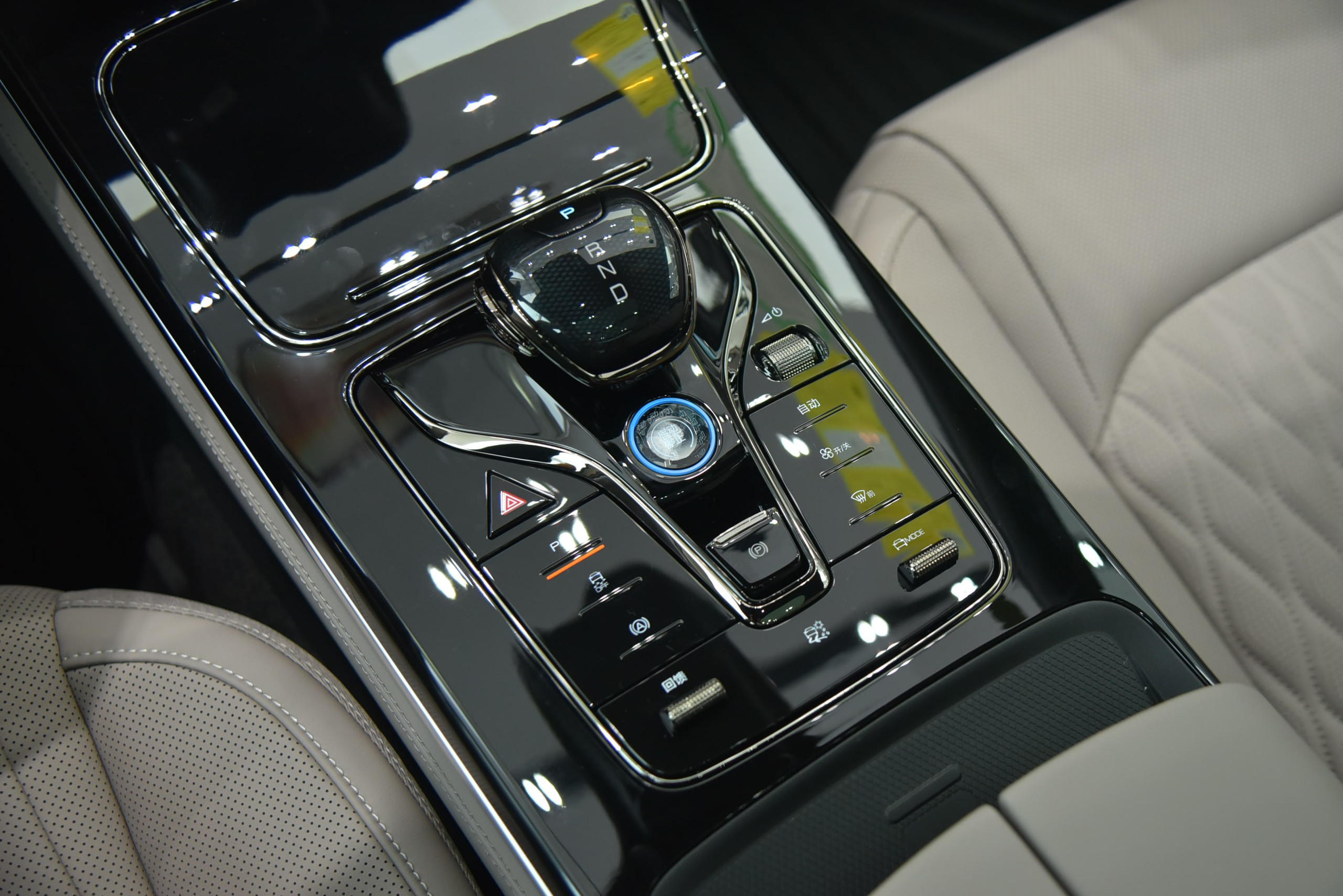 Nội thất của Han EV đi theo hướng hiện đại và sang trọng, khác hẳn những mẫu xe khác cùng nhà BYD. Toàn bộ bên trong xe đều được ốp gỗ và bọc da nappa, điểm xuyết thêm những chi tiết thêu hình quả trám giúp tạo thêm điểm nhấn.