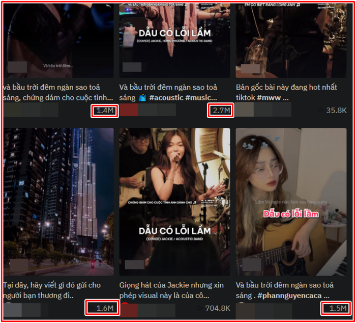 Chưa kể, chỉ cần tìm kiếm những bản cover "Dẫu có lỗi lầm" trên TikTok đều cho ra kết quả từ vài trăm nghìn cho đến vài triệu view, thậm chí chục triệu lượt xem.