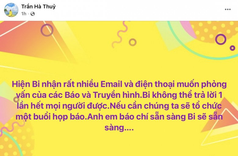 Trên trang cá nhân, Thủy Bi liên tục đăng tải nhiều clip, hình ảnh và bài viết cho biết sẽ không để vụ việc này qua đi dễ dàng nếu phía nhà trường không làm rõ ràng sự việc. Trong bài viết mới đăng tải, Thủy Bi cho biết cô liên tục nhận được nhiều câu hỏi từ phía báo chí, tuy nhiên vẫn chưa thể trả lời hết vì đang phải chăm sóc cho con gái. “Sự việc đã đạt 2 triệu views chỉ sau 2 ngày. Nếu bị kẻ xấu đánh sập FB của Thuỷ Bi, tôi sẽ tiếp tục chiến đấu, bảo vệ con mình bằng FB khác! Mọi người hãy chung tay cùng Bi” - cô chia sẻ trên trang cá nhân.