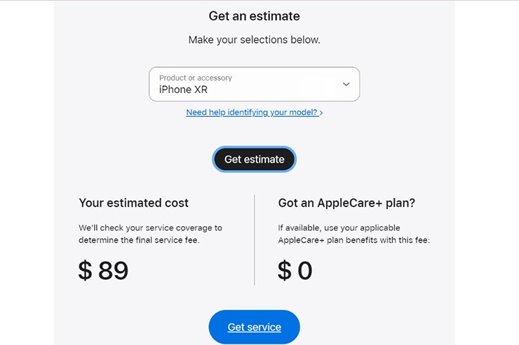 Chi phí thay pin iPhone XR chính hãng là 89 USD.