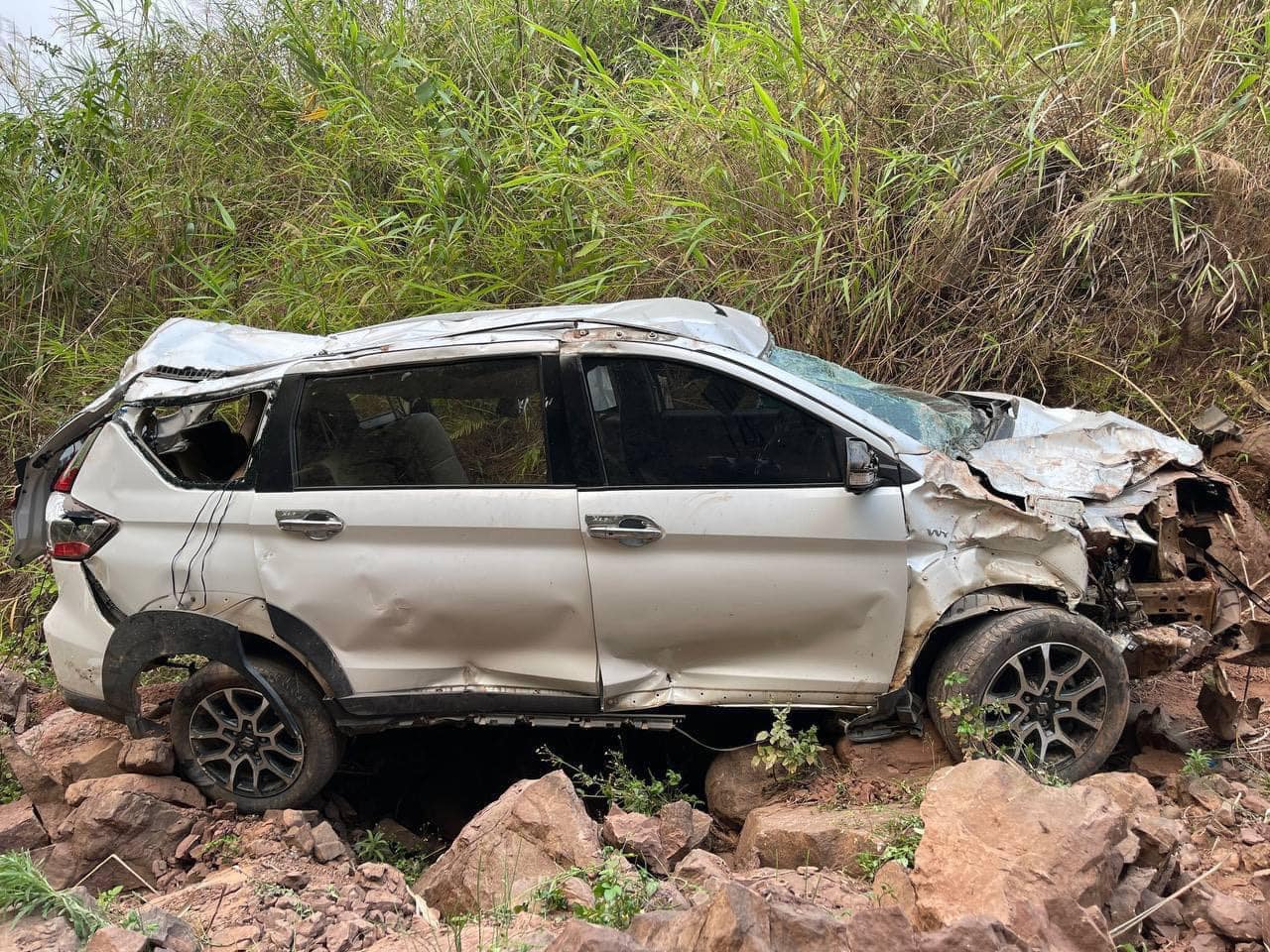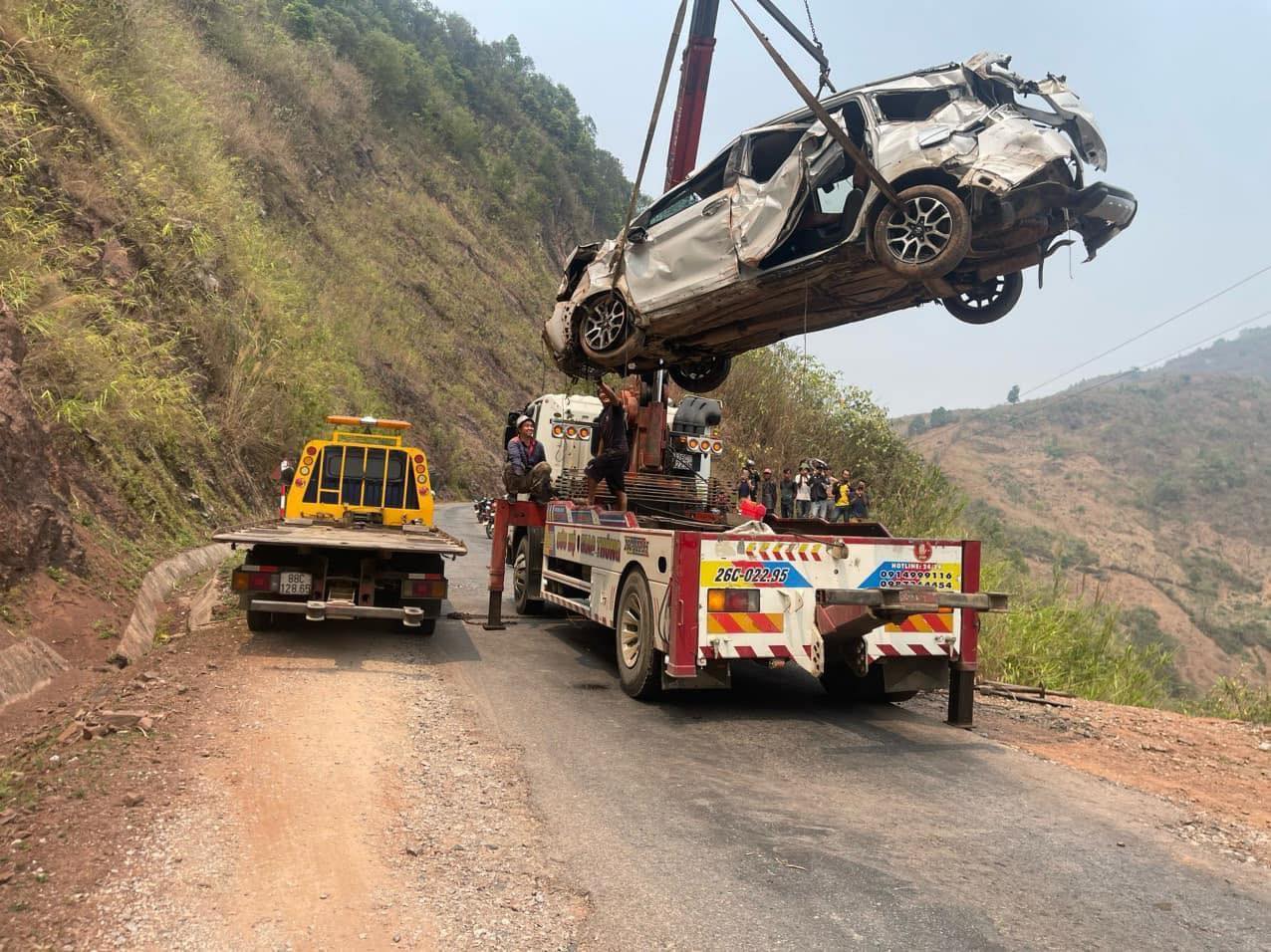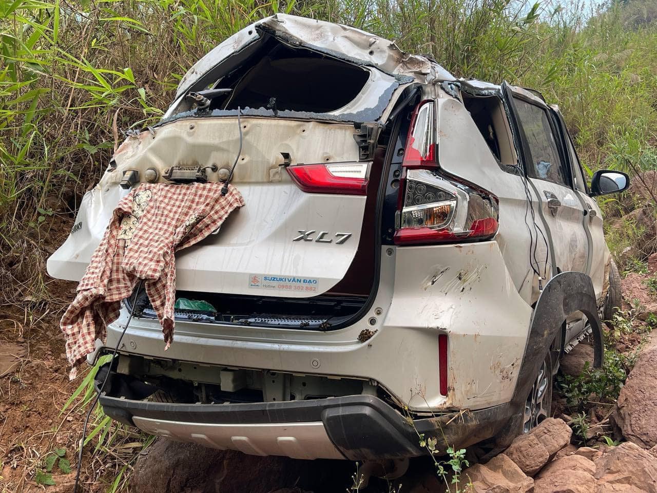 Hiện trường chiếc Suzuki XL7 lao xuống vực tại Điện Biên có thể gây ám ảnh khi chiếc xe bị vò nát ở nhiều vị trí.
