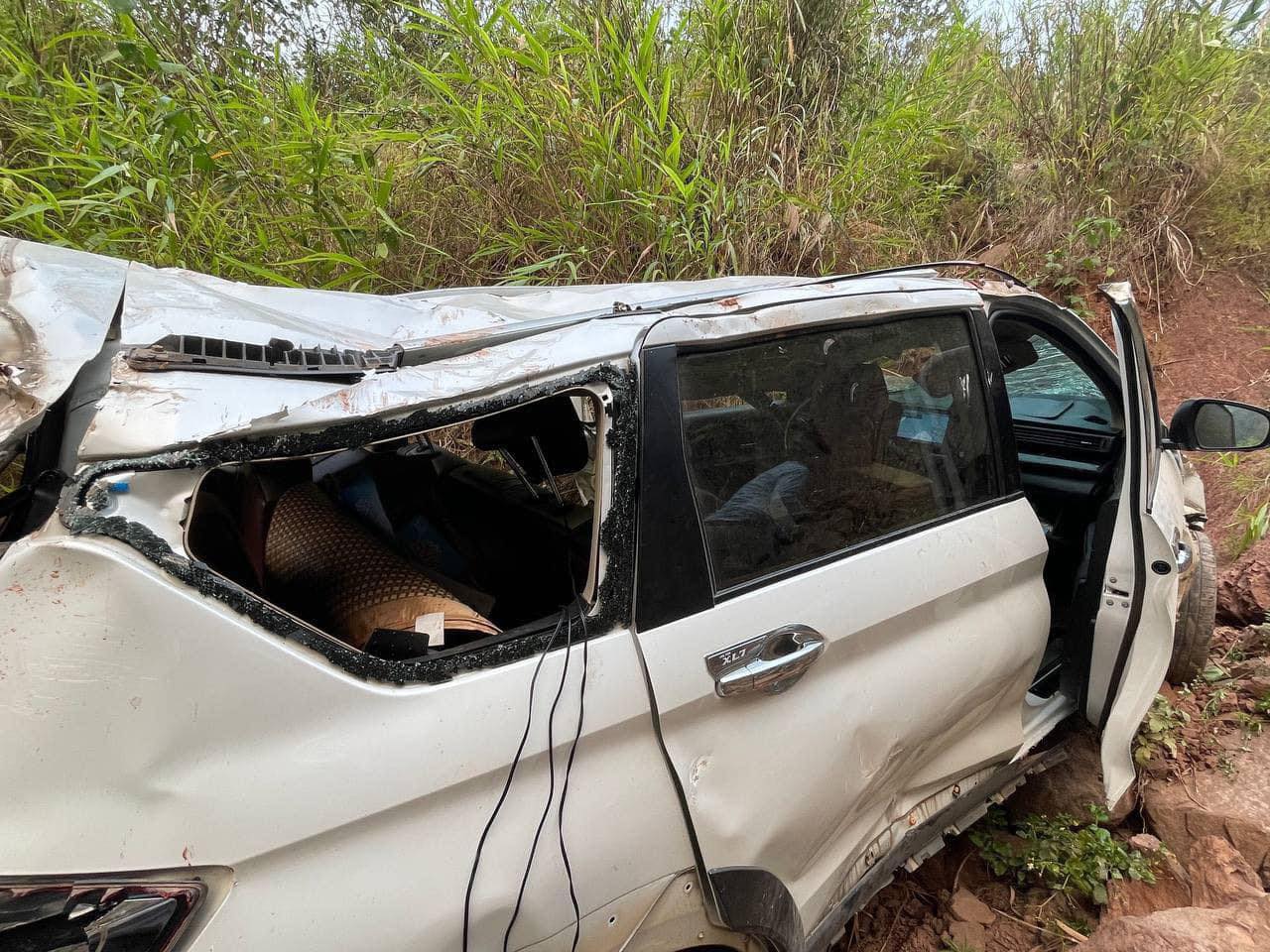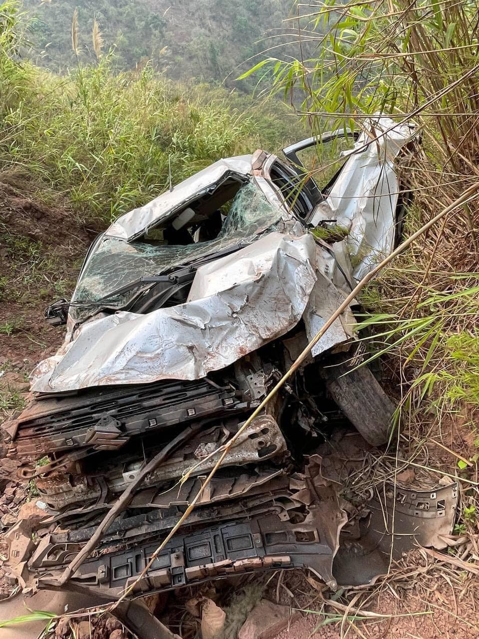 Từ hình ảnh có thể nhận thấy, sau khi rơi xuống vực, chiếc MPV này đã biến dạng hoàn toàn. Kính chắn gió vỡ nát, phần đầu xe không còn nguyên vẹn, một bên hông xe cũng đã bị vò phần kim loại.