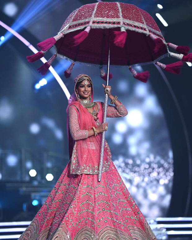 | Harnaaz Sandhu trình diễn bikini tại Chung kết Miss Universe 2021. |