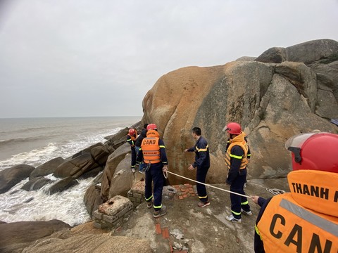 Trước đó, khoảng 15 giờ 5 phút cùng ngày, Cảnh sát PCCC và CNCH nhận được tin từ Công an P.Trường Sơn về việc phát hiện một người phụ nữ trong tình trạng say xỉn, đứng trên mỏm đá, có biểu hiện muốn nhảy xuống biển tại khu vực chân đền Độc Cước, TP.Sầm Sơn.