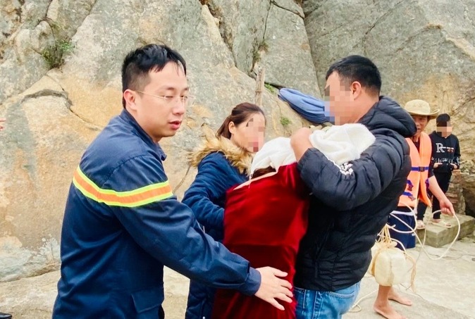 Ngay khi nhận được thông tin, lực lượng cứu hộ đã đến hiện trường triển khai các biện pháp giải cứu. Do người phụ nữ đứng ở vị trí nguy hiểm, việc tiếp cận rất khó khắn, các chiến sỹ đã phải men theo vách đá để tiếp cận rồi vận động, làm công tác tư tưởng để đánh lạc hướng người phụ nữ.