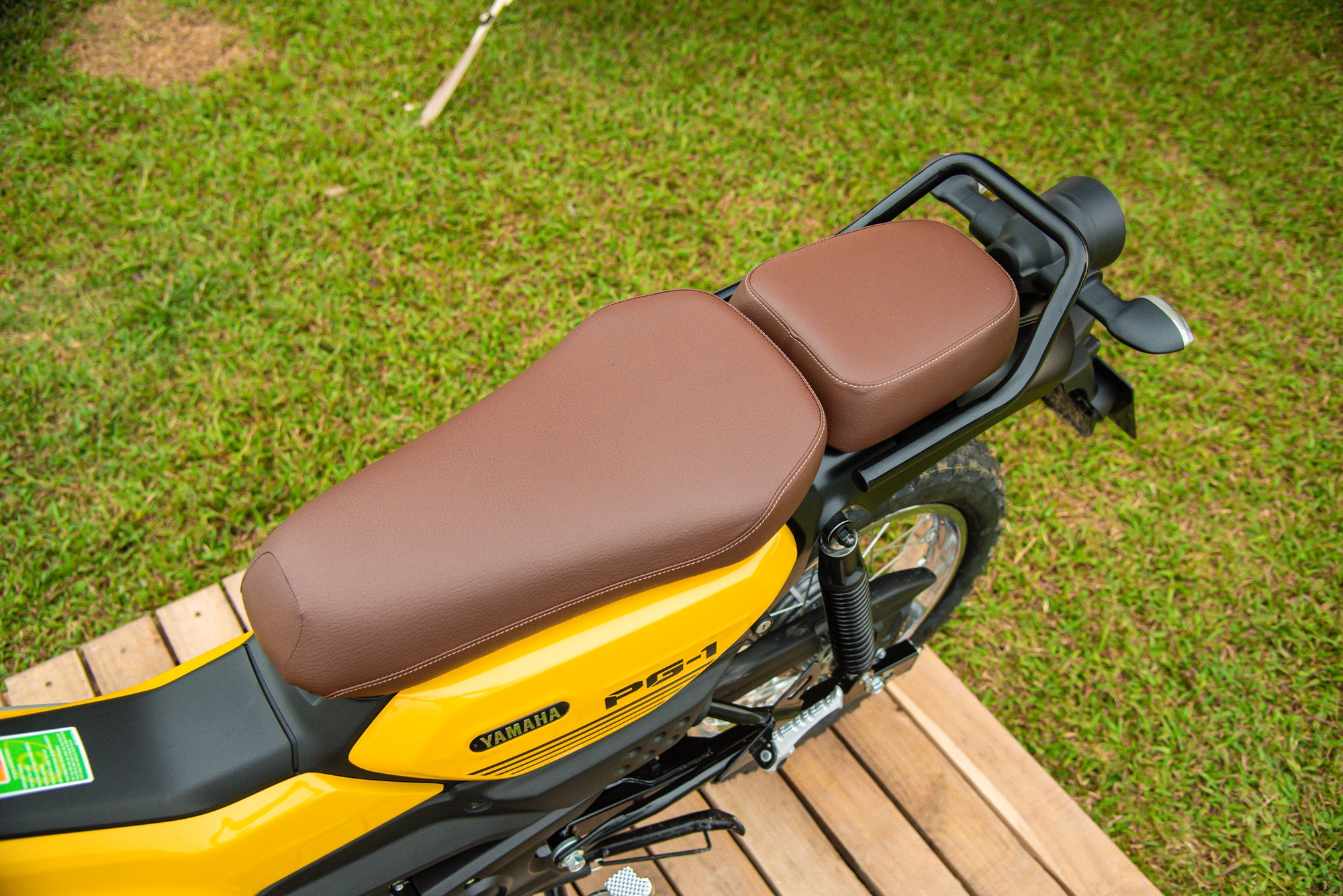 Vì mang kiểu thiết kế scrambler nên Yamaha PG-1 cũng có khả năng off-road nhẹ. Điều này có thể nhận thấy qua những đặc điểm như ghi đông trần, khoảng sáng gầm lớn và bộ lốp gai to bản. Bộ mâm theo xe là loại 16 inch. Phanh đĩa phía trước và phanh tang trống phía sau, không có công nghệ chống bó cứng phanh ABS.
