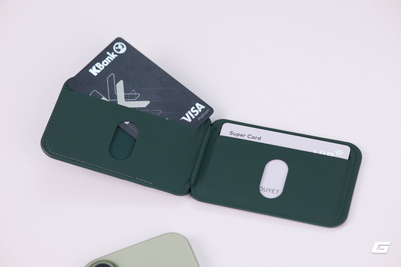 Điểm trừ nhỏ: với 4 thẻ cứng dày (ví dụ 4 thẻ ngân hàng chip), ví bắt đầu hơi căng và thao tác gập lại không còn êm như khi chỉ nhét 2-3 thẻ. Con số lý tưởng dường như là 2 thẻ cứng kèm 1 danh thiếp hoặc thẻ xe mỏng.