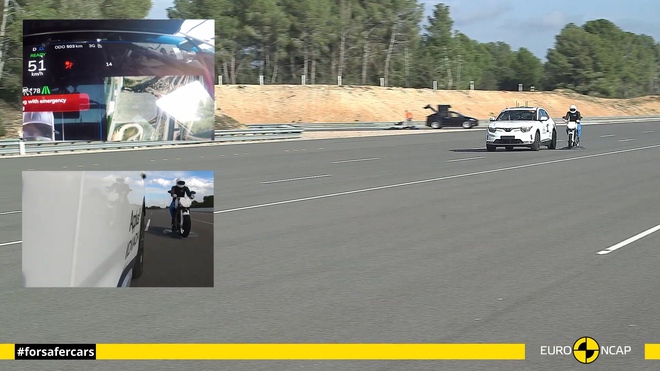 Hệ thống hoạt động tốt khi chiếc xe sẽ đưa ra cảnh báo hoặc ngăn mở cửa khi phát hiện người đi xe đạp đang tới. Tương tự, hệ thống phanh tự động khẩn cấp phản ứng tốt với các tình huống có người đi xe máy tham gia và đạt điểm tối đa.