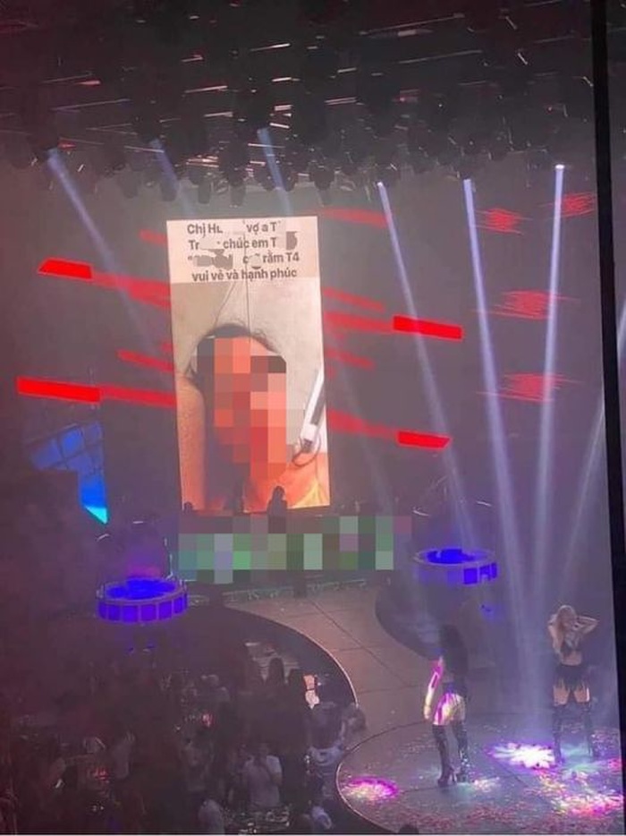 Kèm theo lời chúc này, người vợ còn chuẩn bị hình ảnh của "tiểu tam" để chiếu lên màn hình led. Tất cả các vị khách có trong quán bar đều có thể chứng kiến, nhiều người đã nhanh tay chụp lại hình ảnh này và chia sẻ trên mạng xã hội.