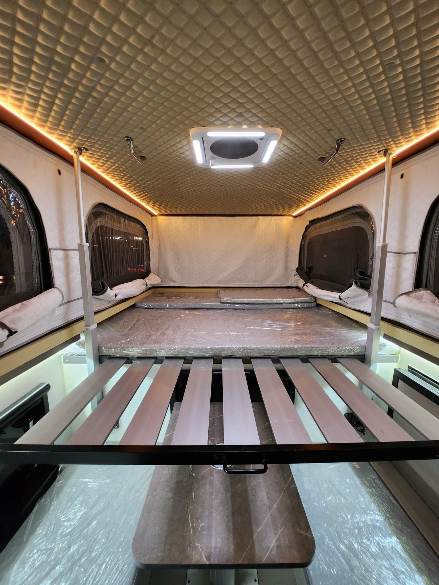 Kích thước của nhà di động này là 3.100 x 1.601 x 1.383 mm. Nếu mở phần mái để tăng kích thước, chiều cao được nâng lên 2.123 mm, tức là người lớn có thể thoải mái đứng bên trong mà không chạm trần. Phần mở rộng được cấu tạo từ vải chống thấm, với 4 ô cửa sổ để lấy không khí vào trong. Mái nhà còn được gắn thêm một tăng mềm, có thể mở ra che mưa, nắng khi đi dã ngoại.