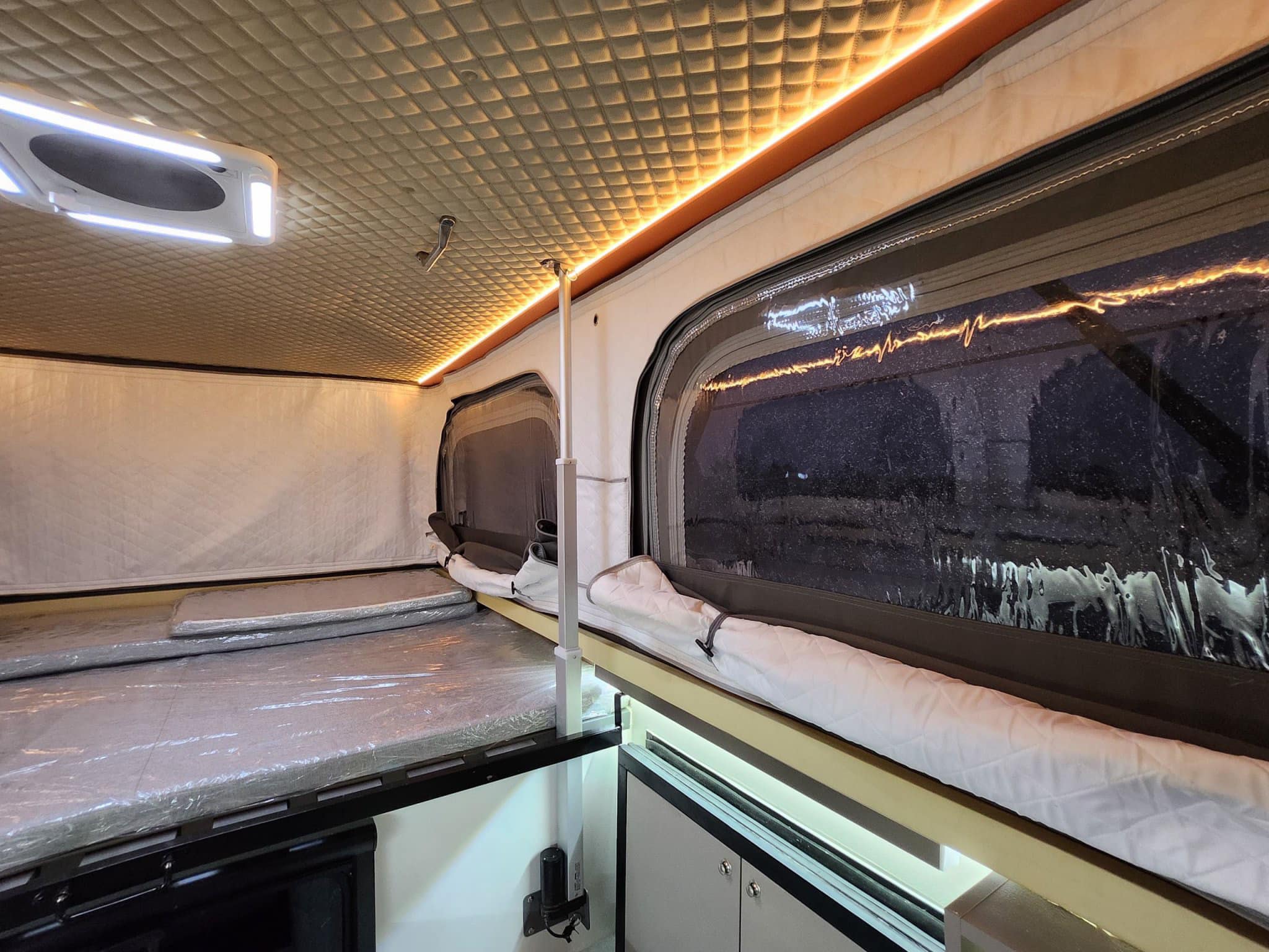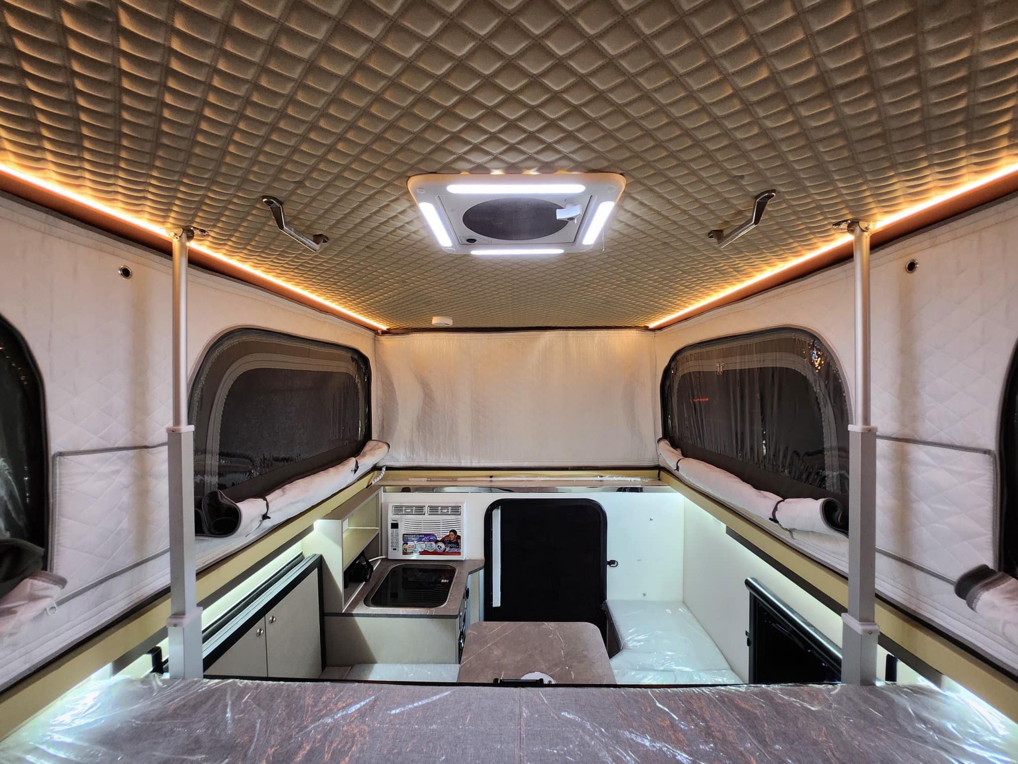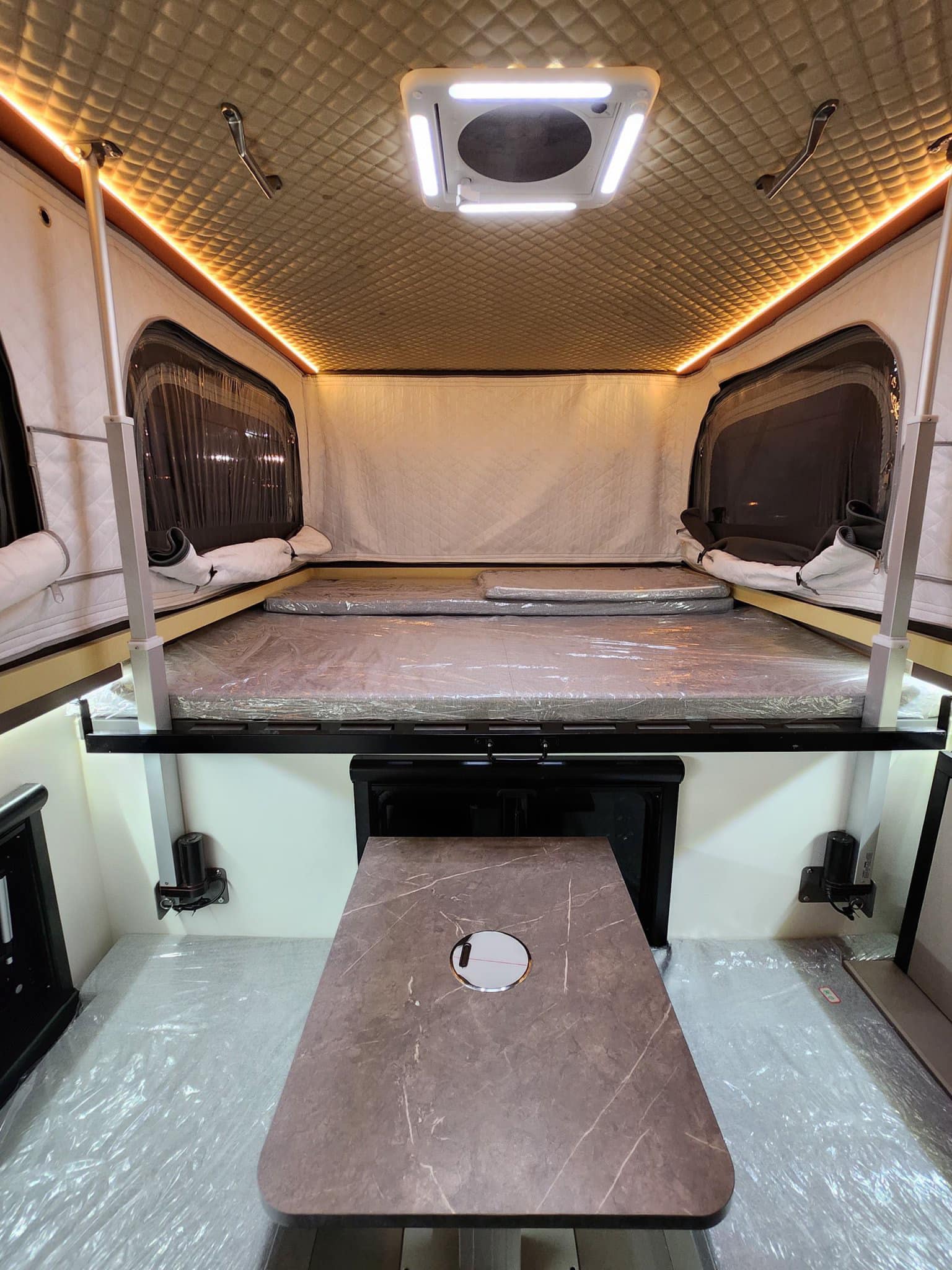 Ở bên trong, xe có đầy đủ tiện nghi cơ bản như đèn, điều hoà, tủ lạnh, bếp nấu ăn, chậu rửa... và không thể thiếu được giường và bàn ghế mini.