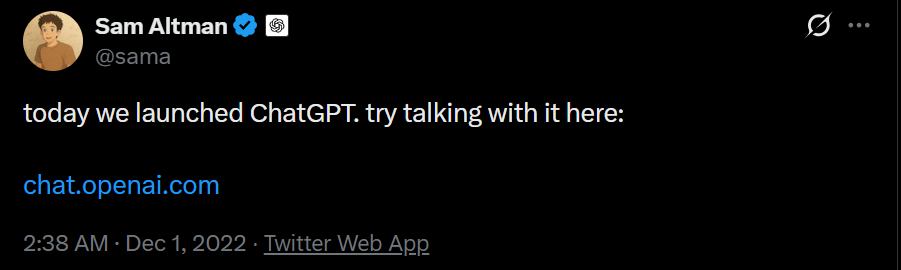 CEO OpenAI Sam Altman viết tweet giới thiệu ChatGPT ngày này 3 năm trước