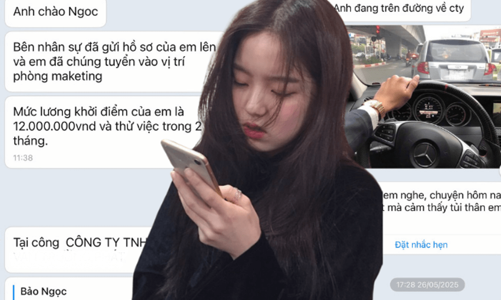 Theo đó, cô gái có tên viết tắt là N. chia sẻ loạt tin nhắn của cô và một người đàn ông lạ. Người này chủ động nhắn tin chúc mừng cô bạn đã trúng tuyển vị trí Marketing, mức lương khởi điểm 12 triệu đồng. Vì không hề có nhu cầu tìm kiếm việc làm hay gửi CV vị trí này trước đó nên N. đã ngay lập tức phủ nhận: “Mình không phỏng vấn”. Người đàn ông này sau đó đã thừa nhận nhắn nhầm số, song anh ta không kết thúc câu chuyện mà tiếp tục gợi ra một tình huống khác.
